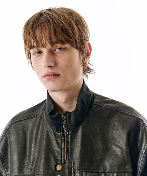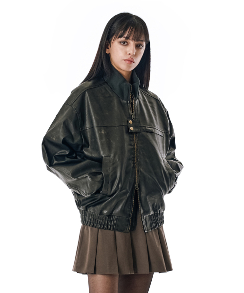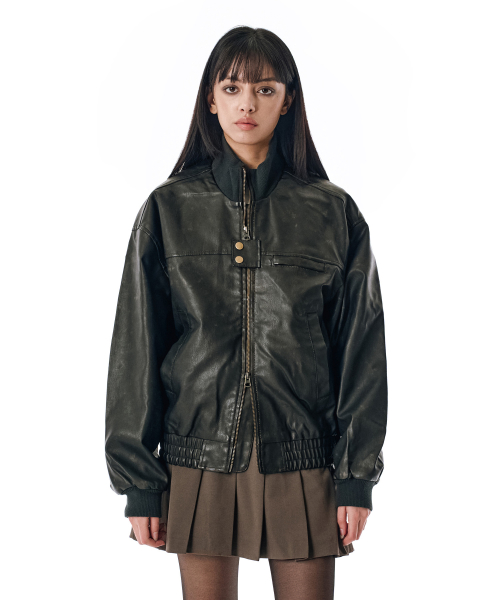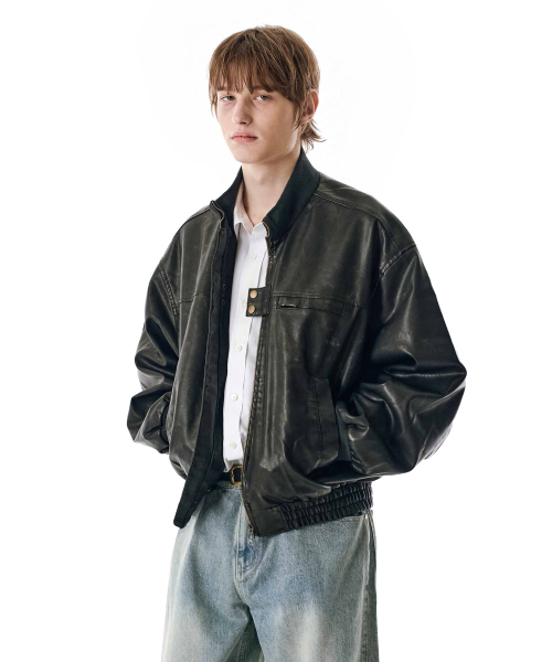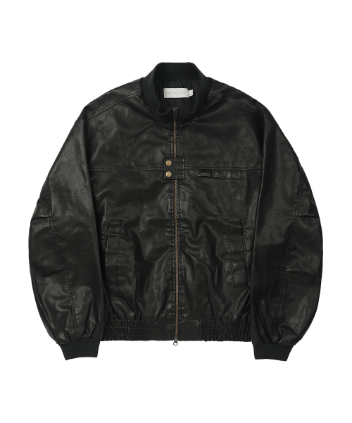 Washed Faux Leather Blouson [BLACK]_SEJK024BLACK