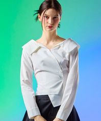 WOMEN 미디 크롭 랩 오프숄더 슬림 긴팔 셔츠 [WHITE] 긴팔티 ver.