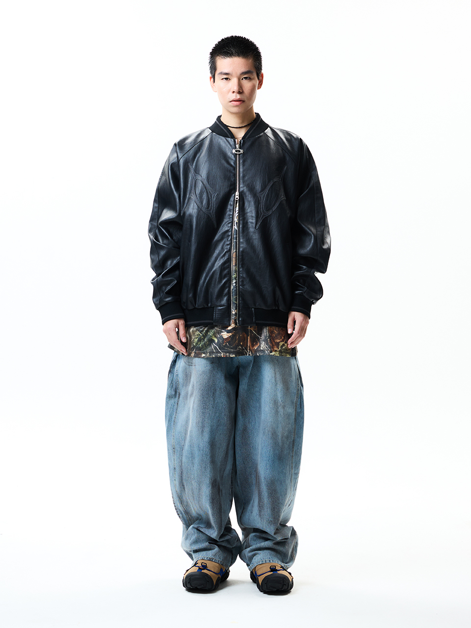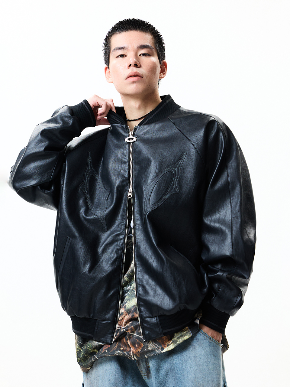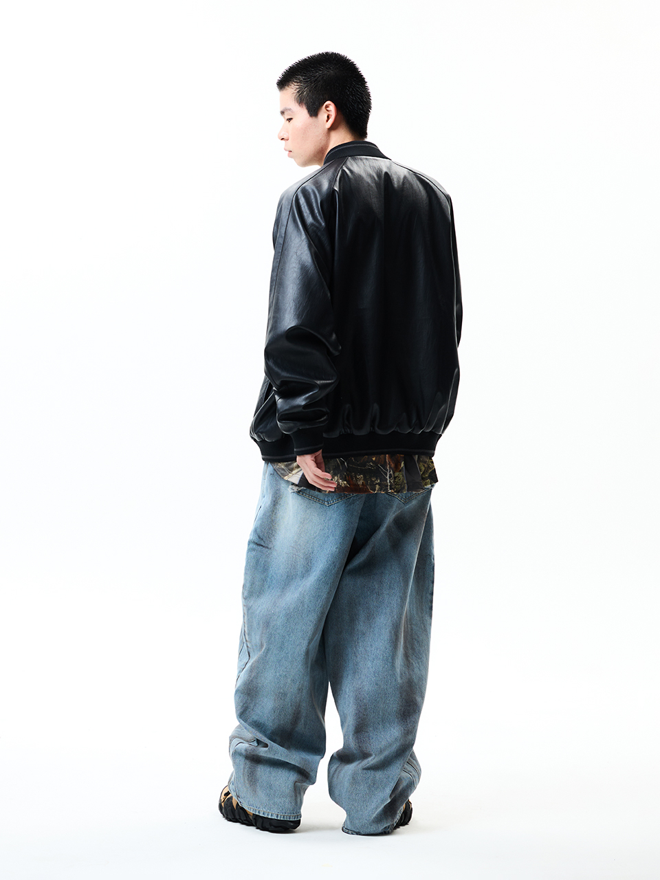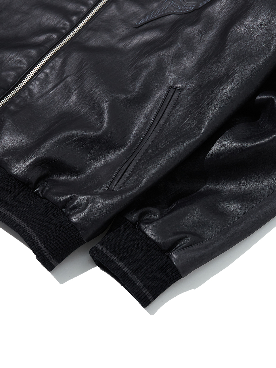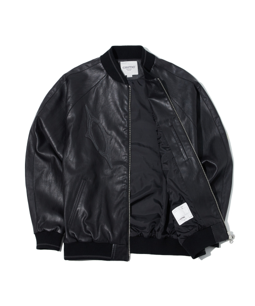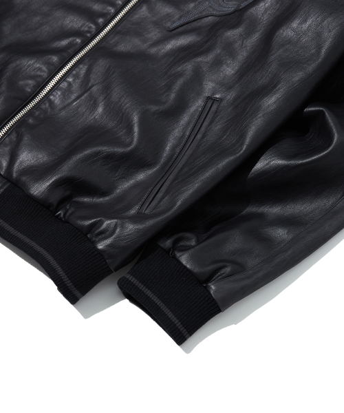 8117 빈티지 비건레더 점퍼_블랙
