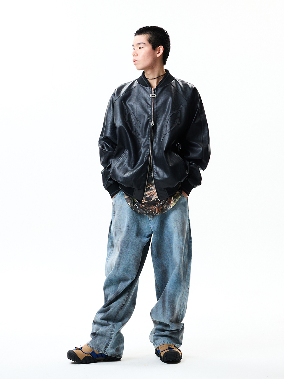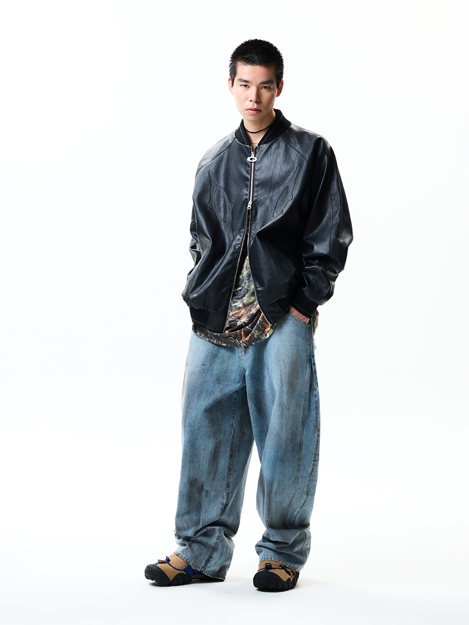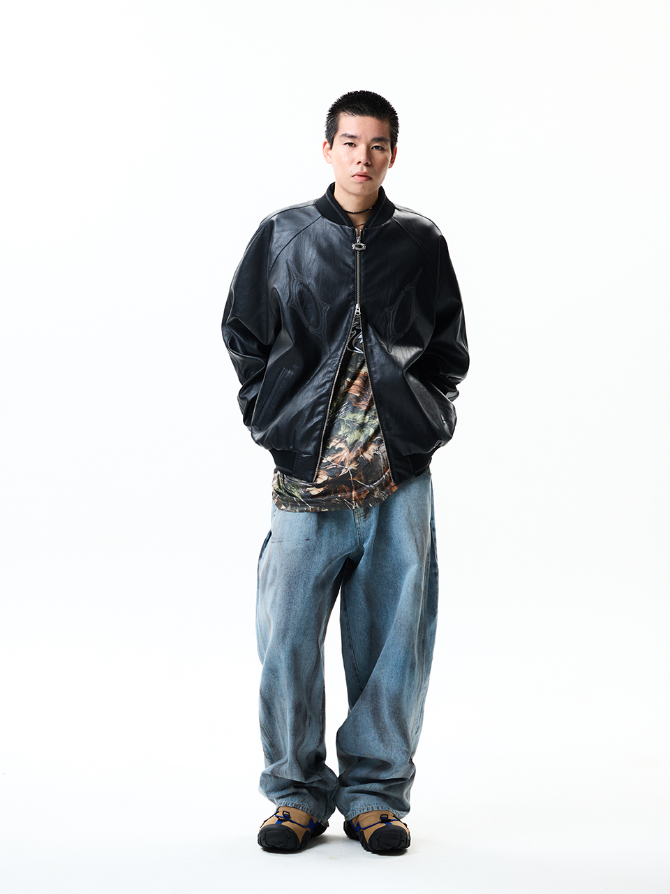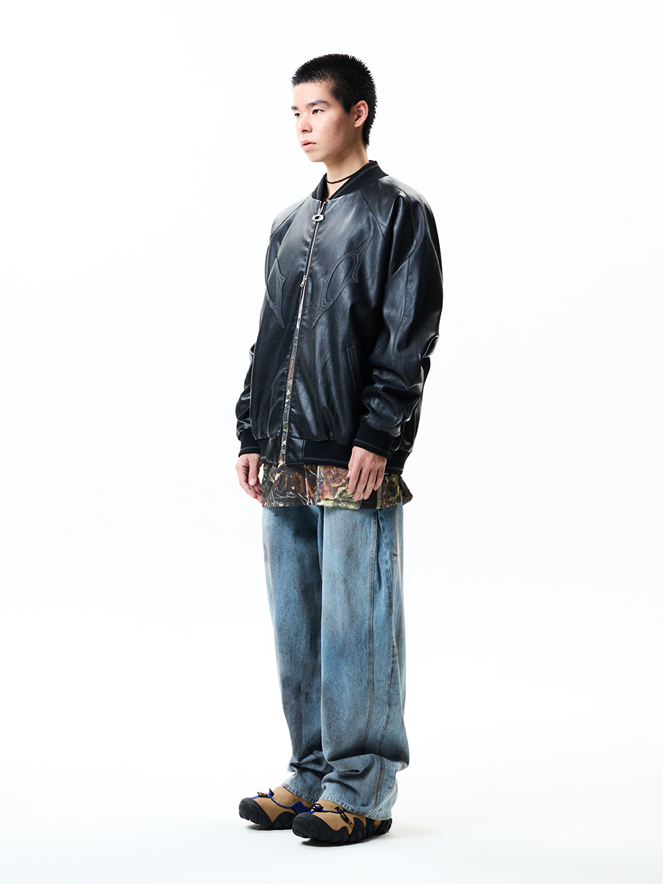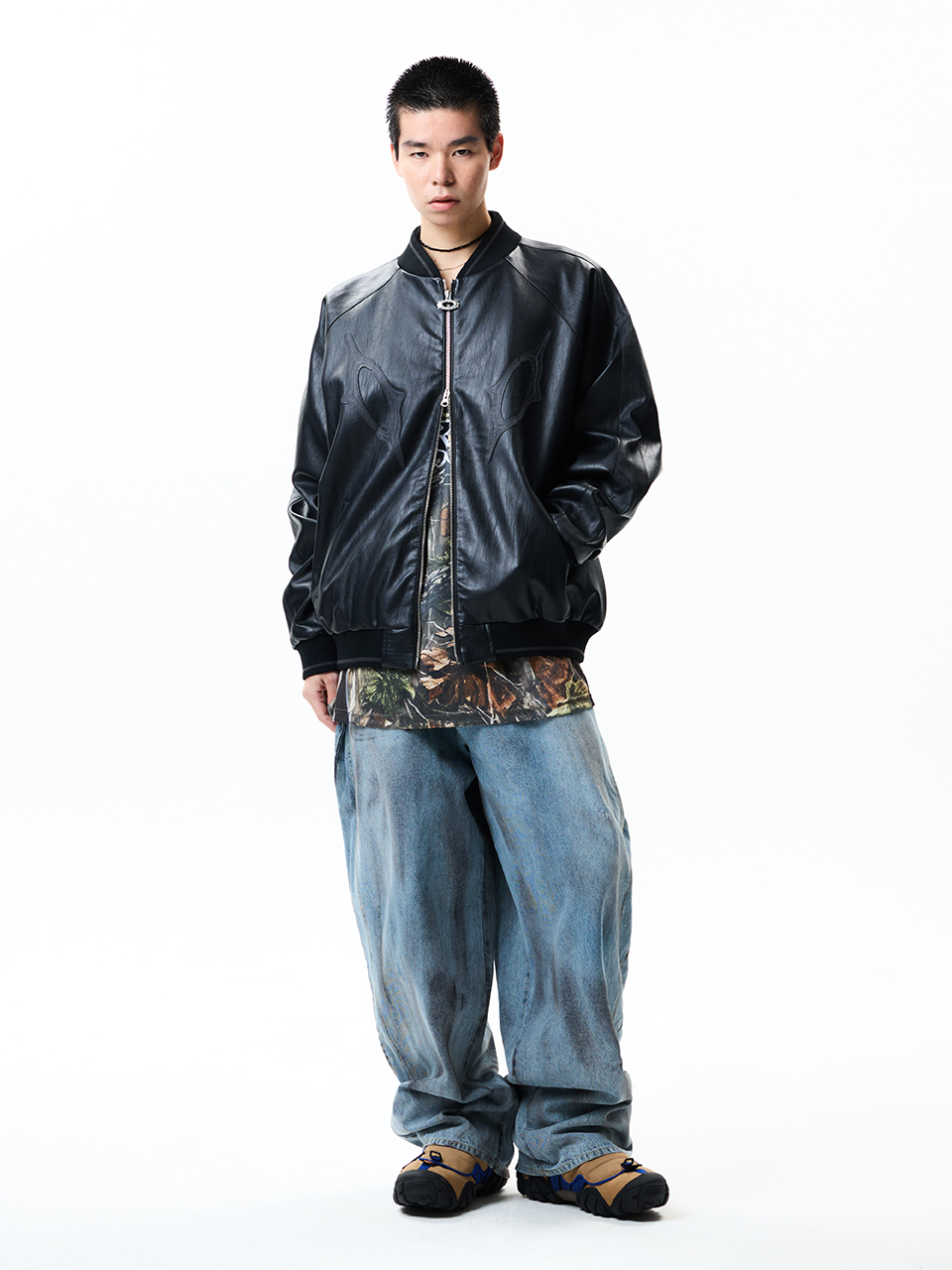 8117 빈티지 비건레더 점퍼_블랙