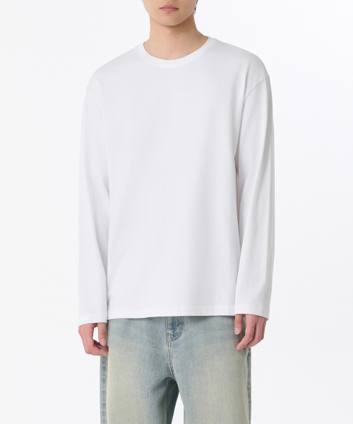 릴렉스드 크루 넥 긴소매 티셔츠 [화이트]