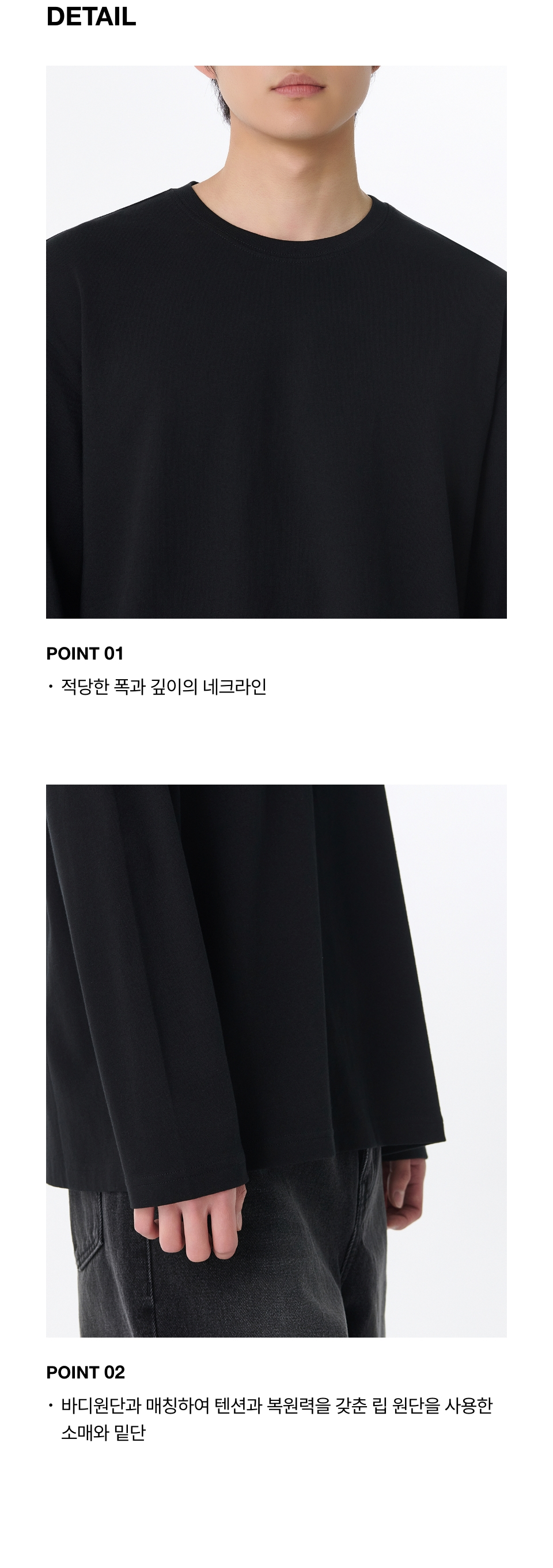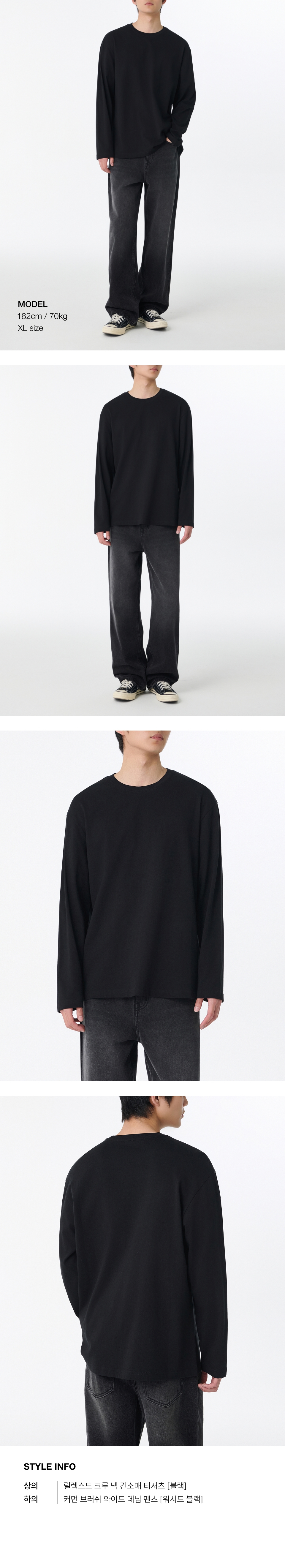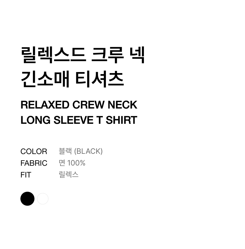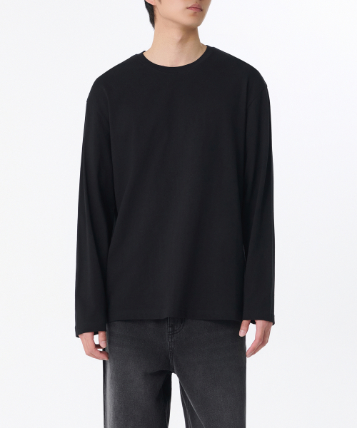 릴렉스드 크루 넥 긴소매 티셔츠 [블랙]