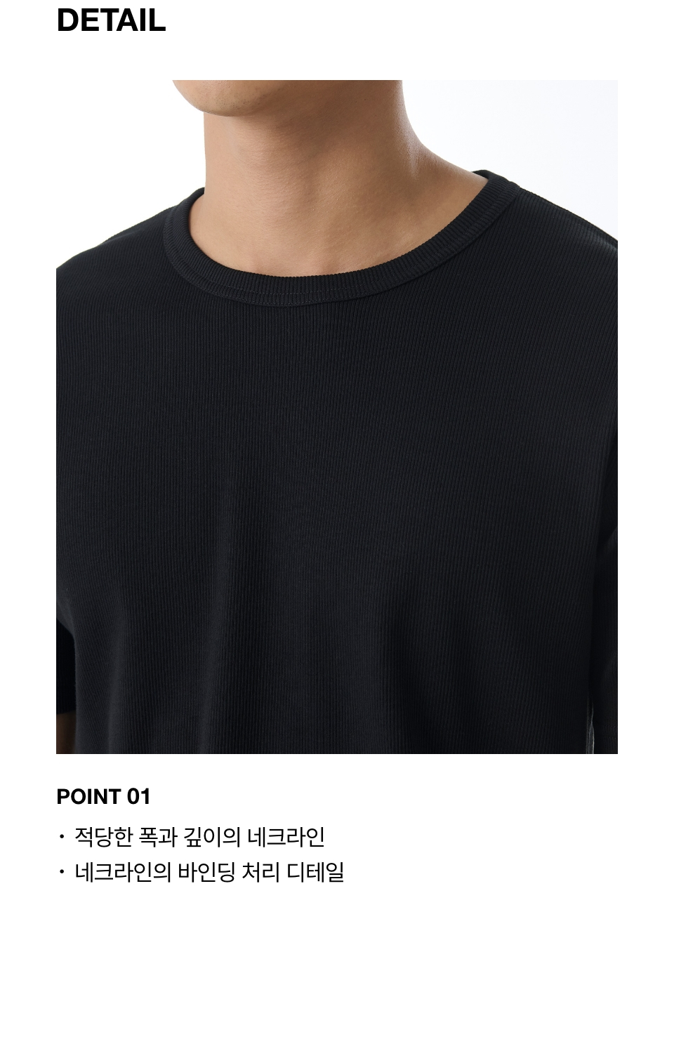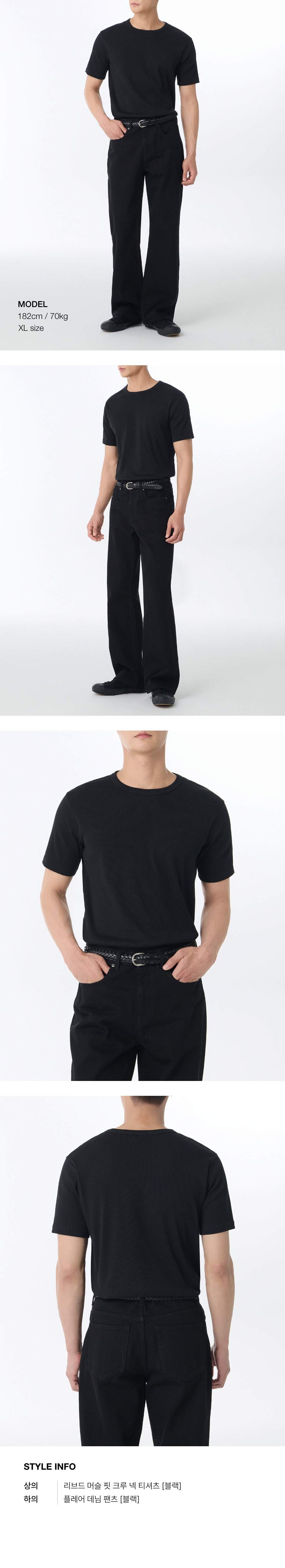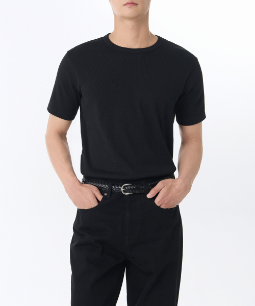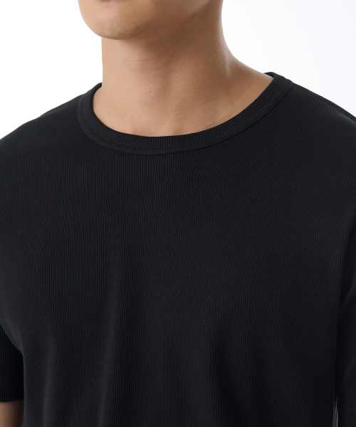 리브드 머슬 핏 크루 넥 티셔츠 [블랙]