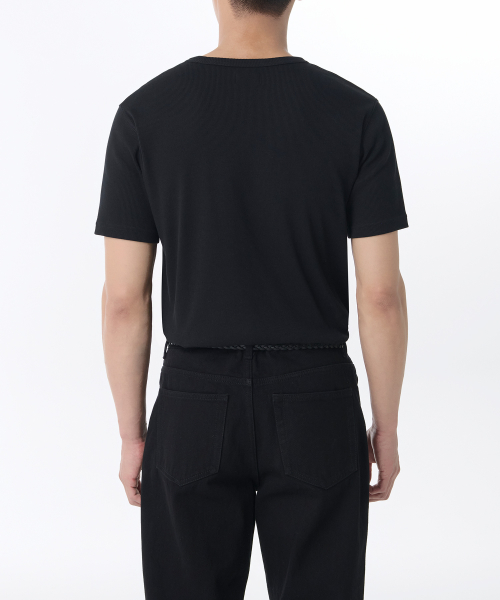 리브드 머슬 핏 헨리 넥 티셔츠 [블랙]