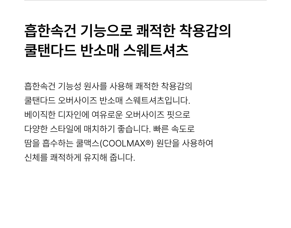 [쿨탠다드] 오버사이즈 반소매 스웨트셔츠 [블랙]