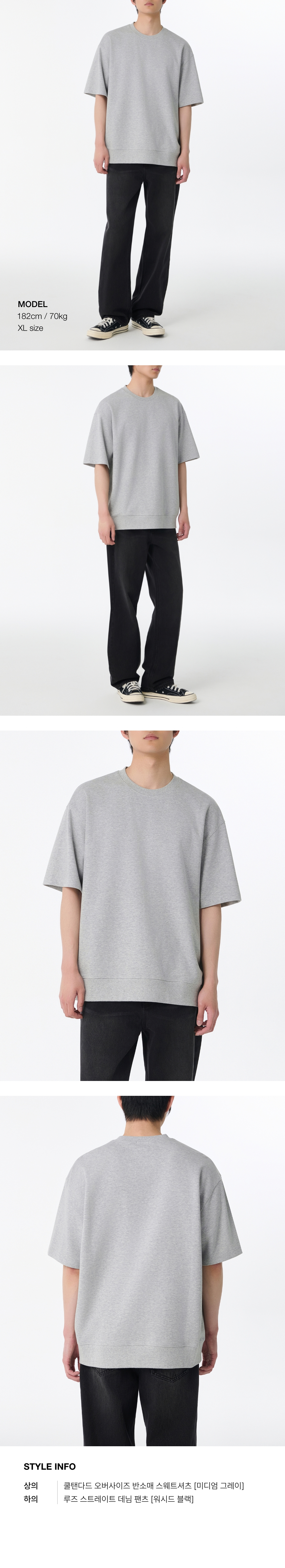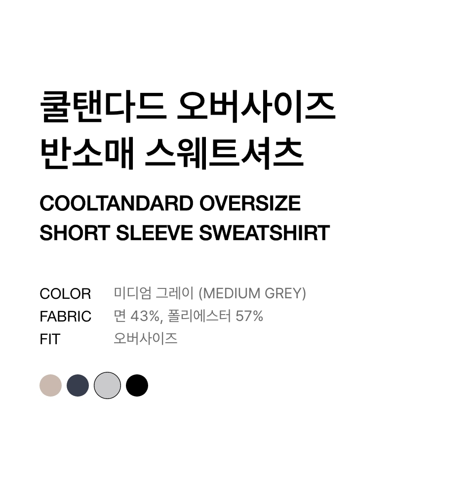 [쿨탠다드] 오버사이즈 반소매 스웨트셔츠 [미디엄 그레이]
