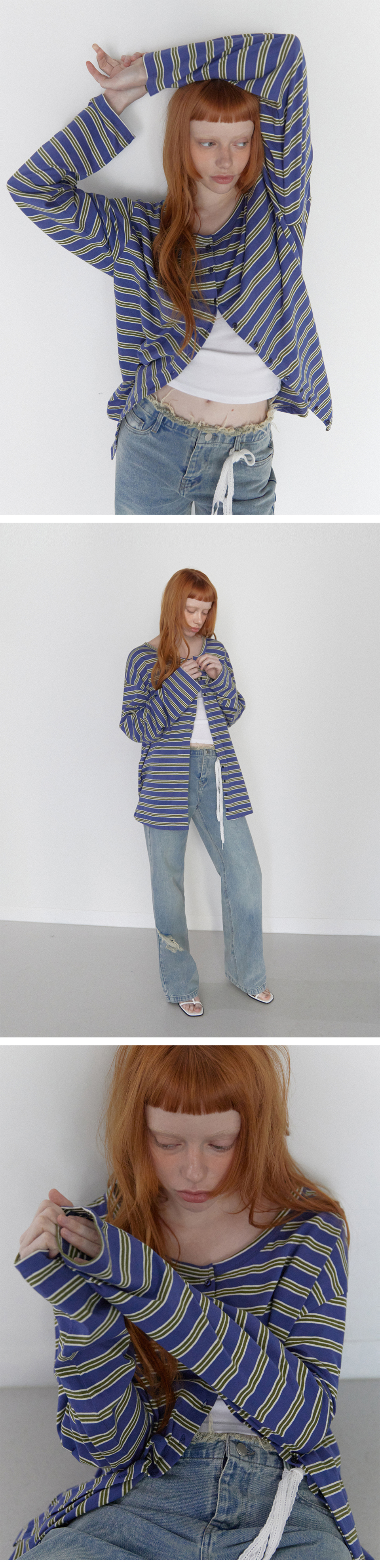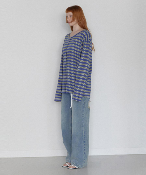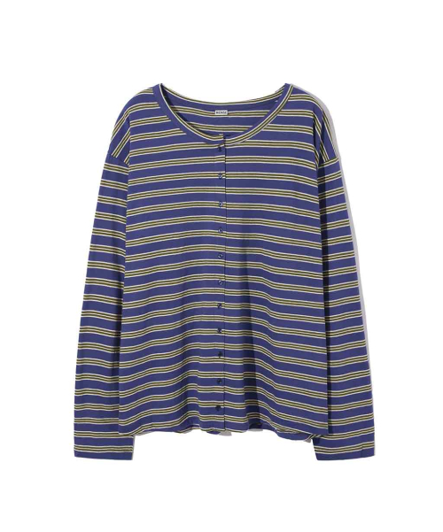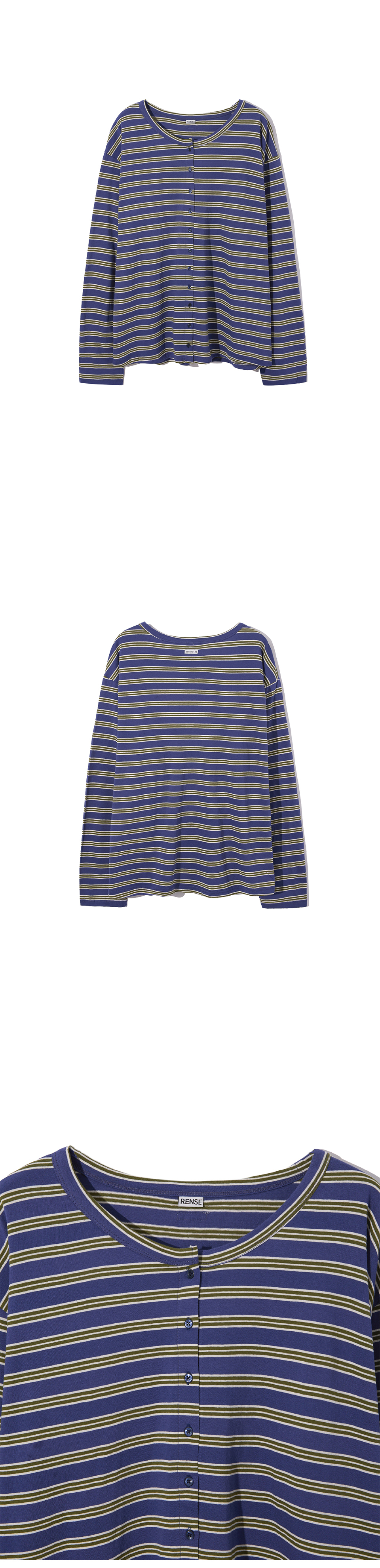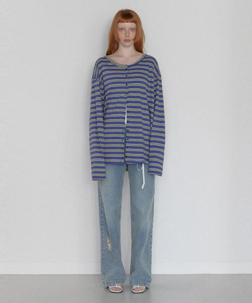 Stripe Button Long Sleeve Blue