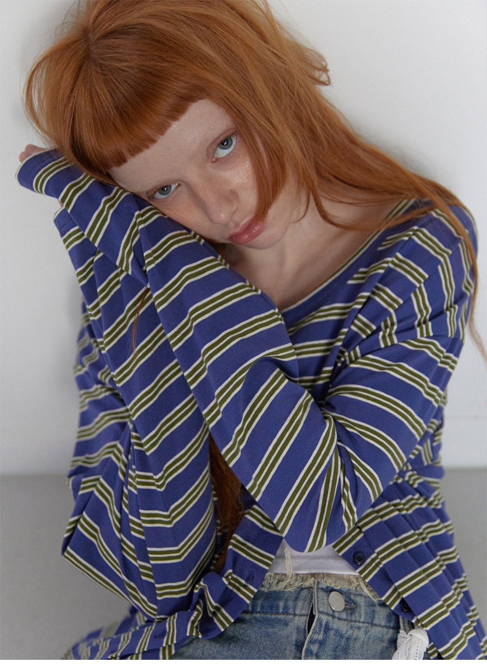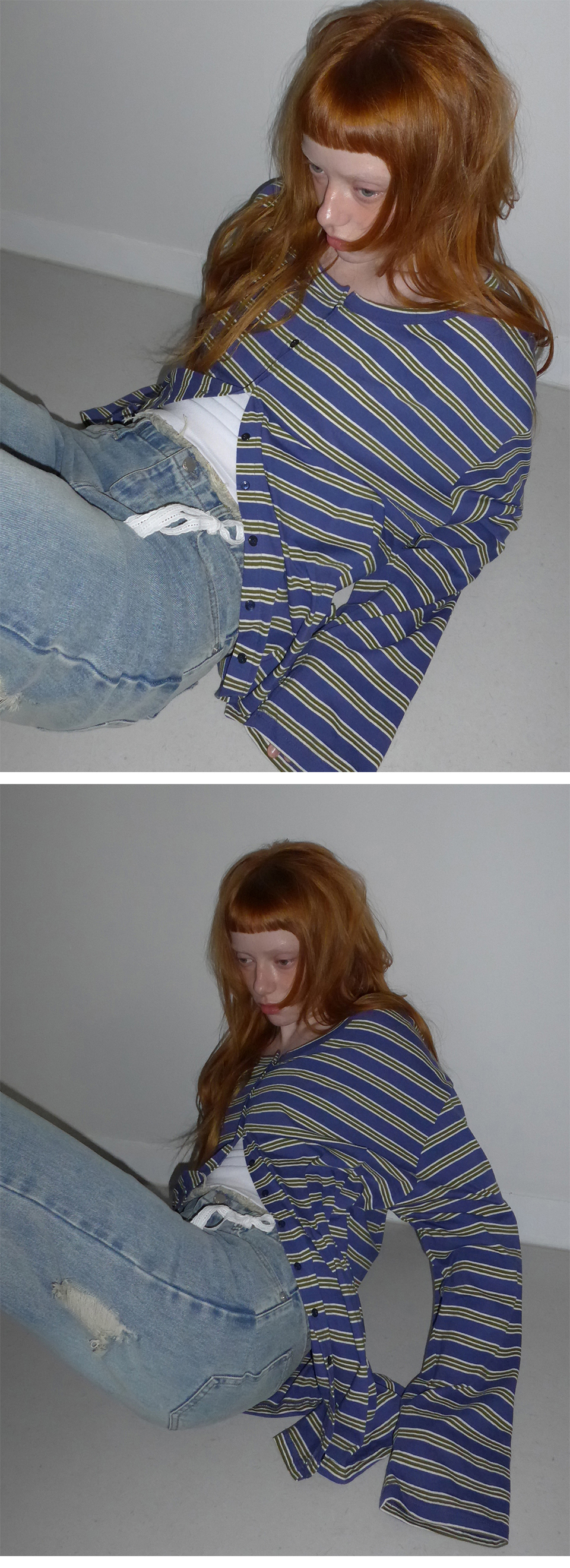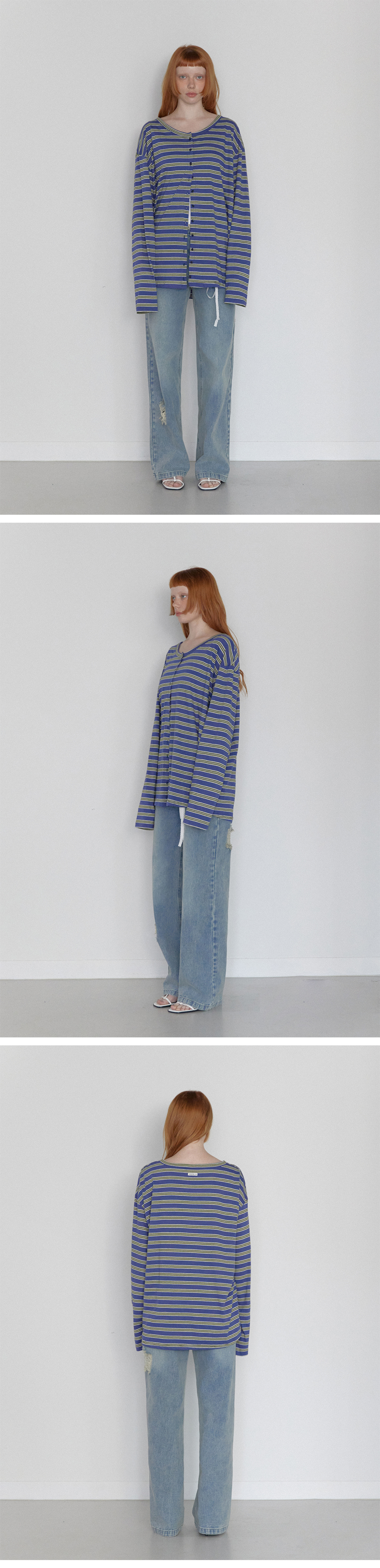 Stripe Button Long Sleeve Blue