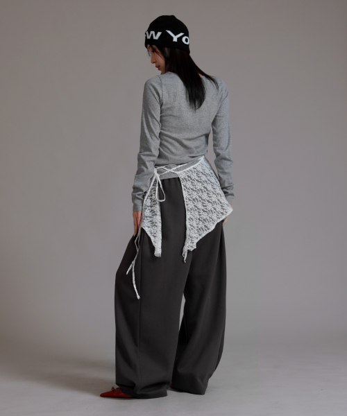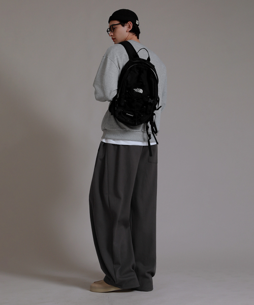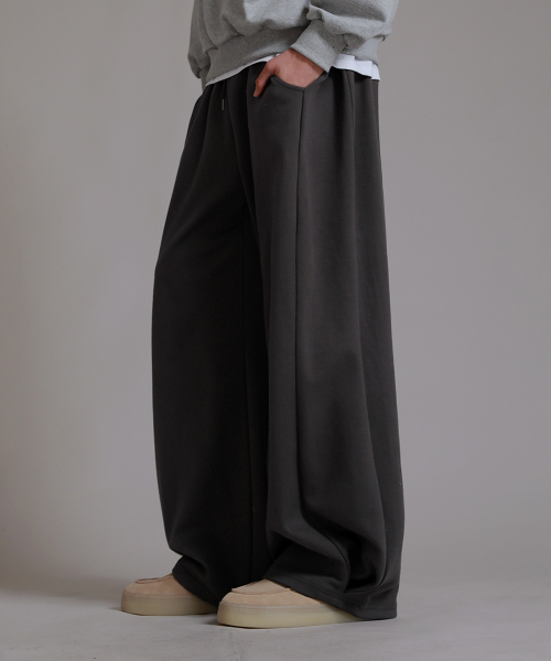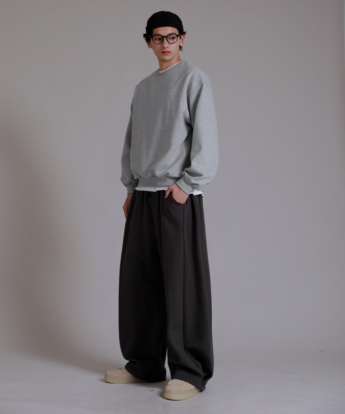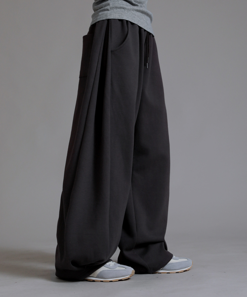 투 턱 롱사이드 오버 팬츠_차콜
