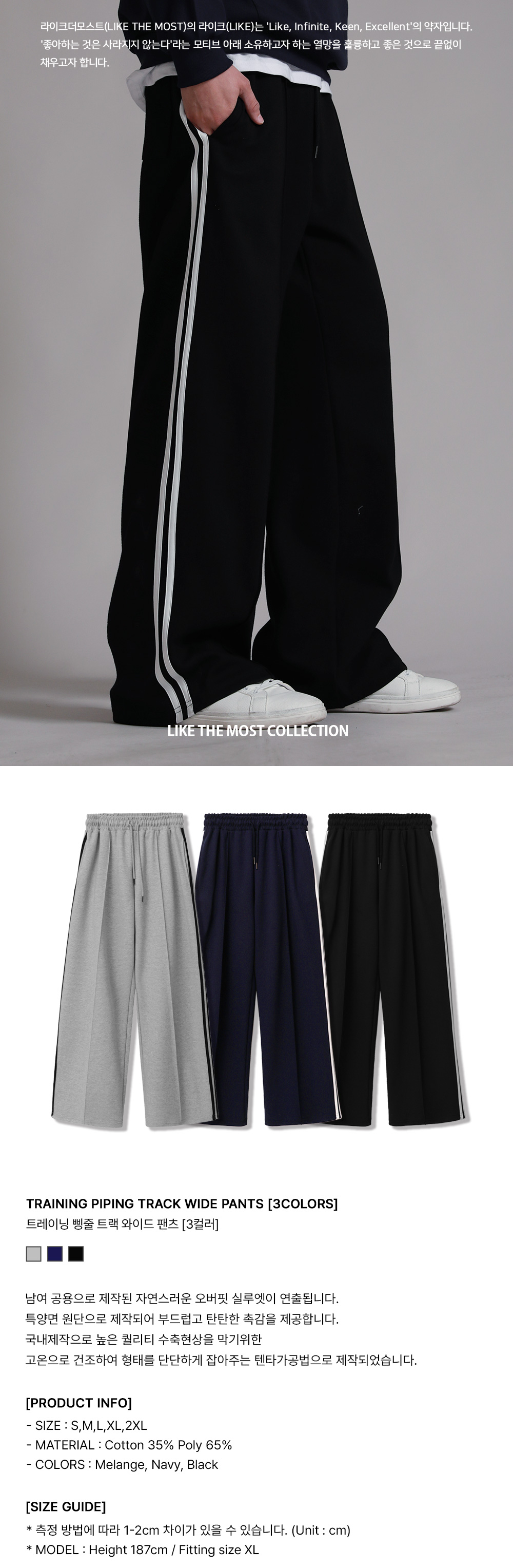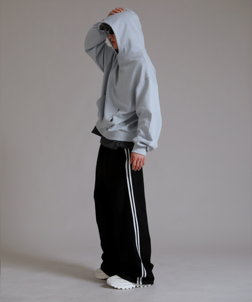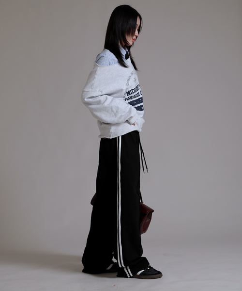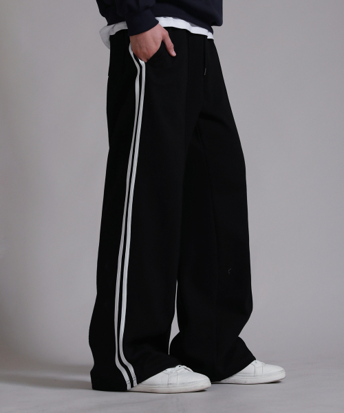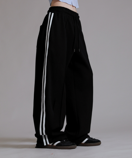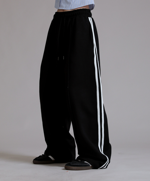 트레이닝 삥줄 트랙 와이드 팬츠_블랙