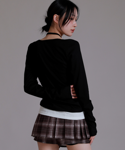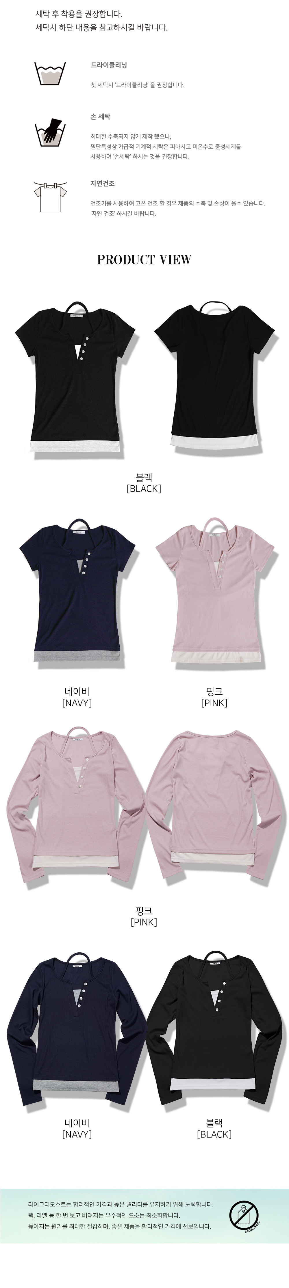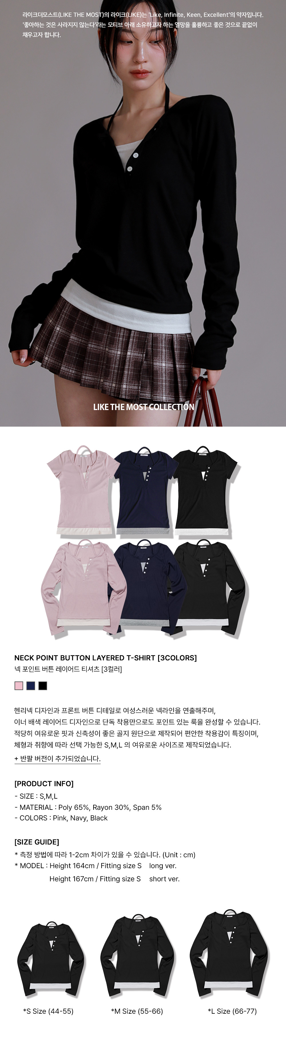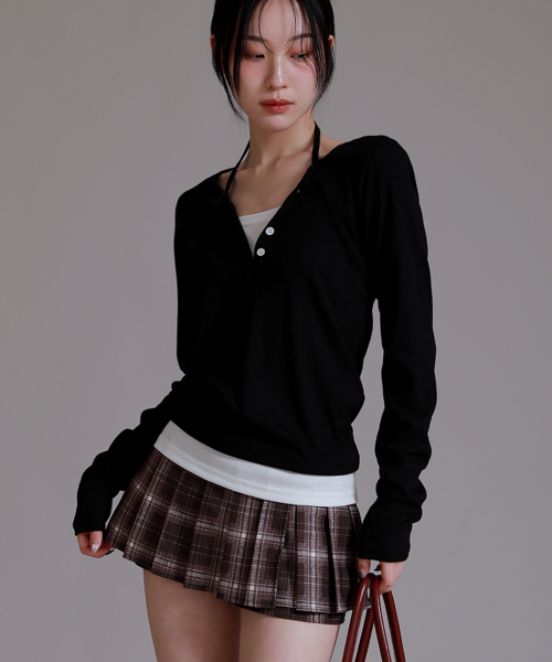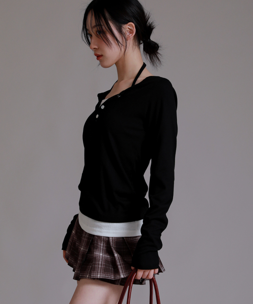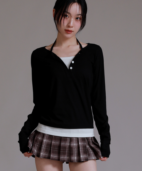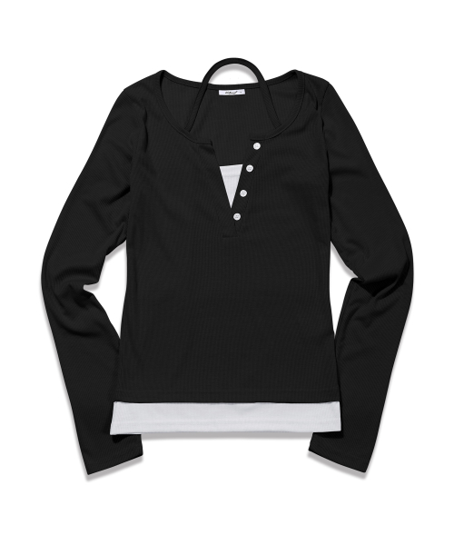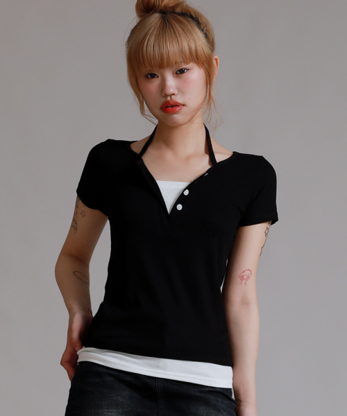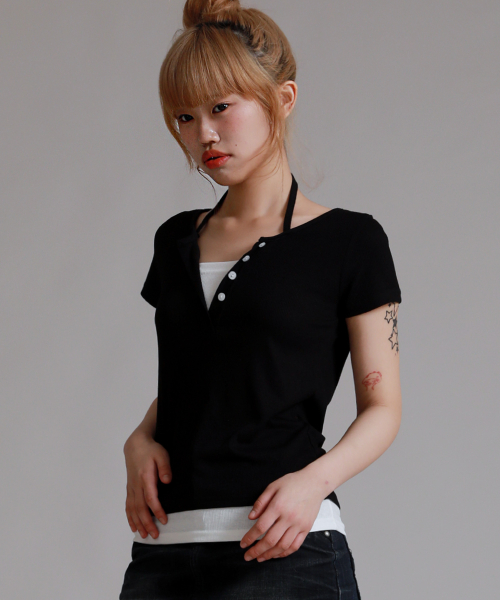 반팔 추가 넥포인트 버튼 레이어드 티셔츠_블랙