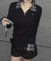 체크 포인트 슬림 카라 롱슬리브 블랙