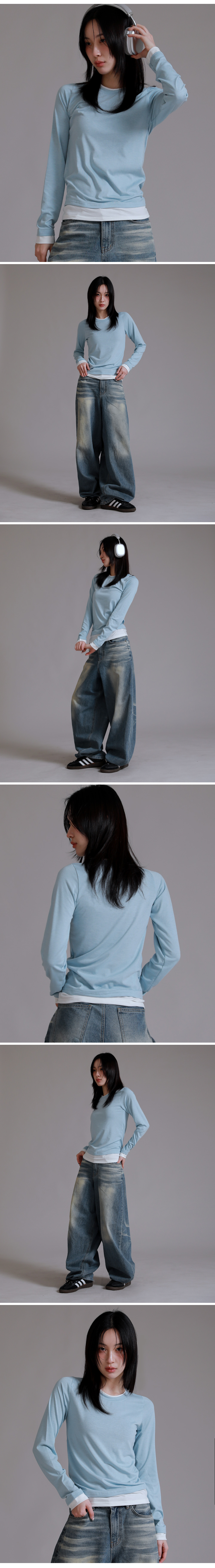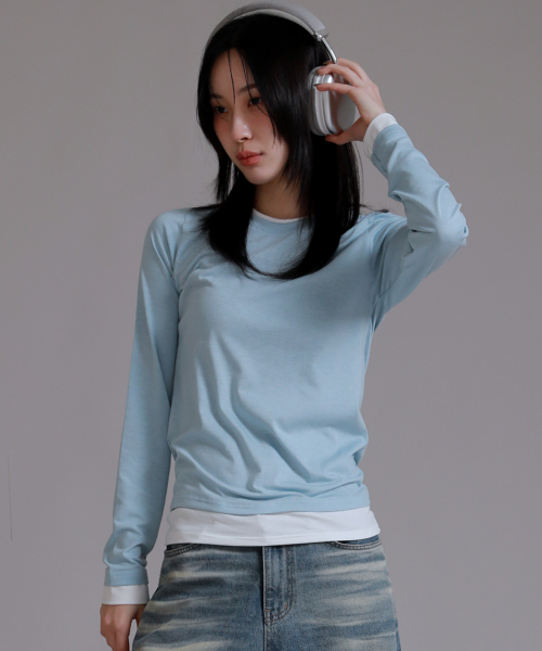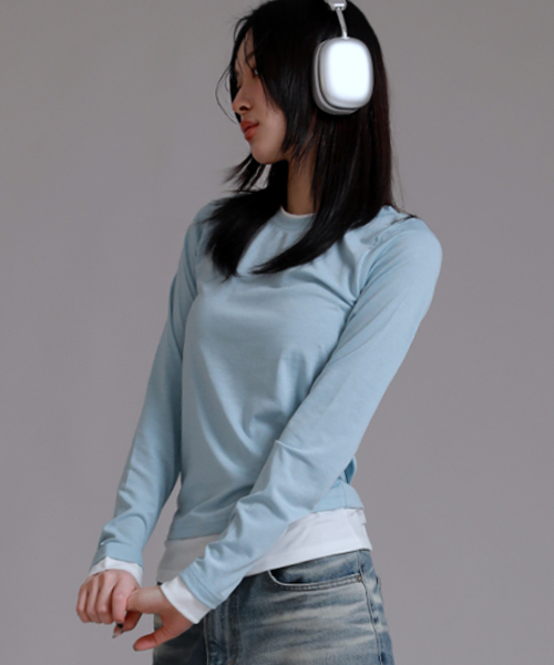 우먼즈 슬림 크루 넥 긴소매 티셔츠 [다크 그레이]