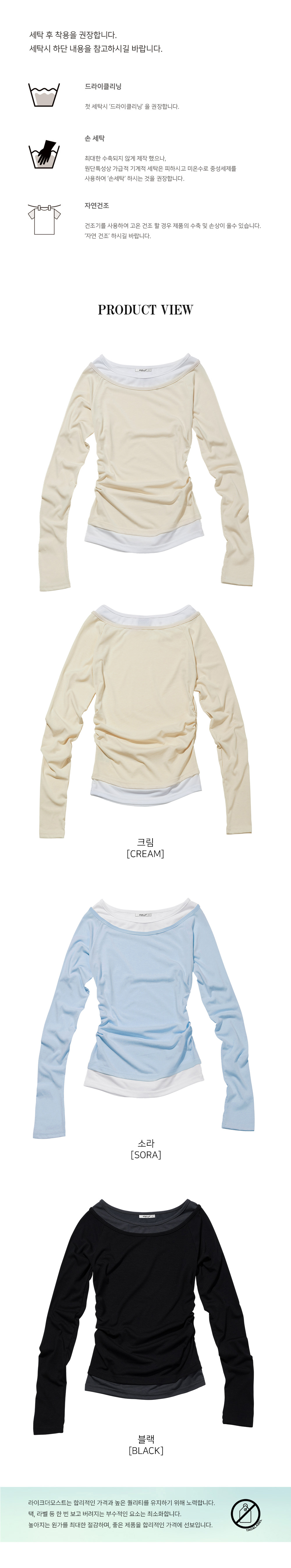 셔링 포인트 오프 레이어드 티셔츠_크림