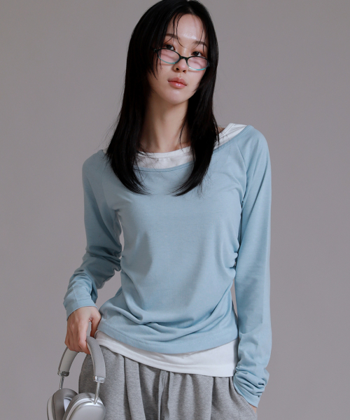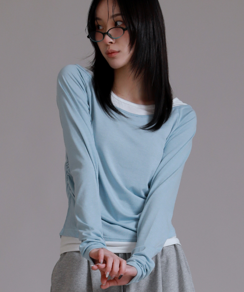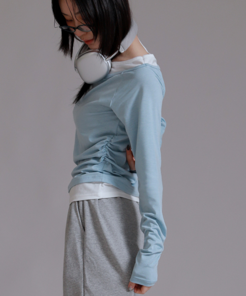 셔링 포인트 오프 레이어드 티셔츠_소라