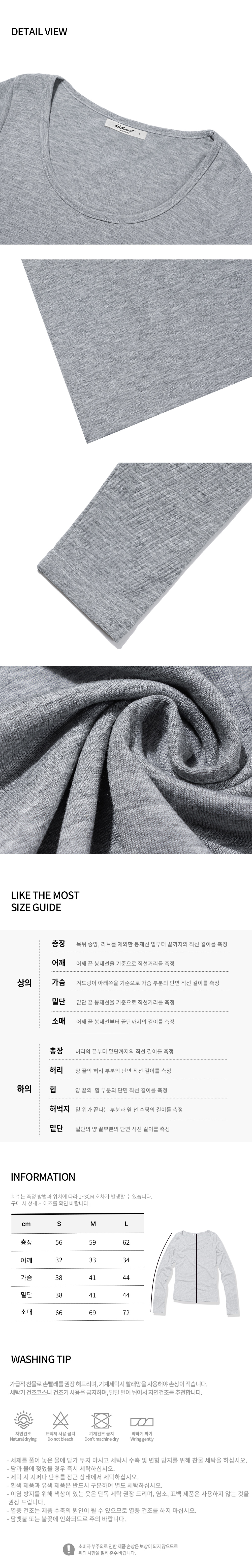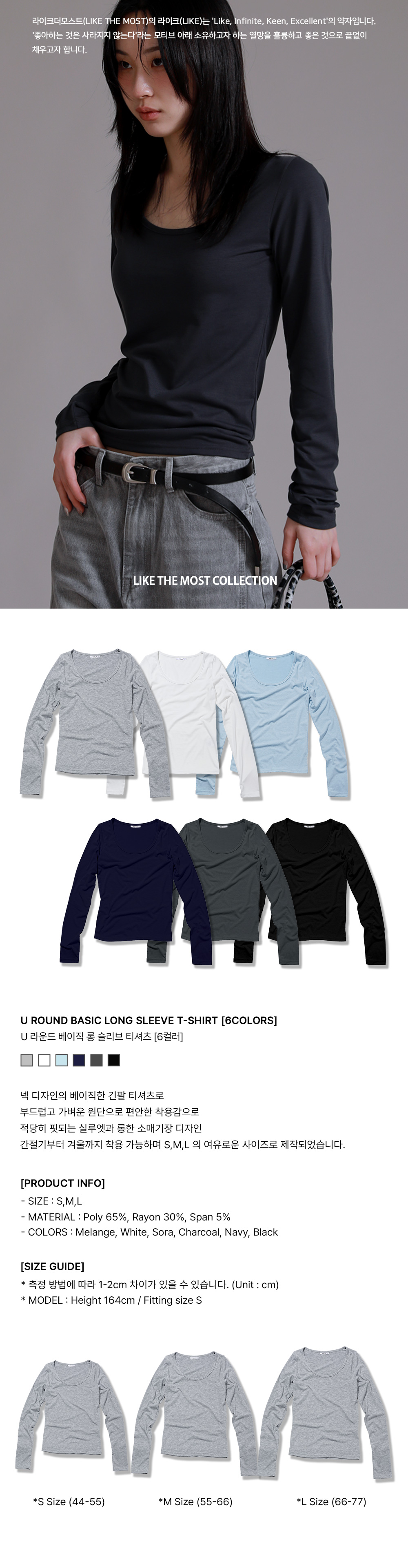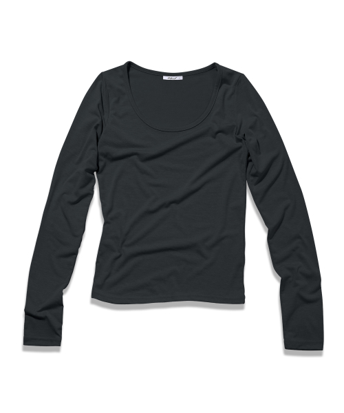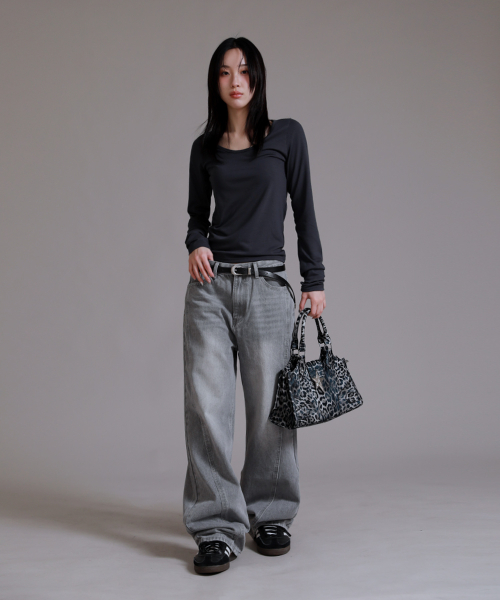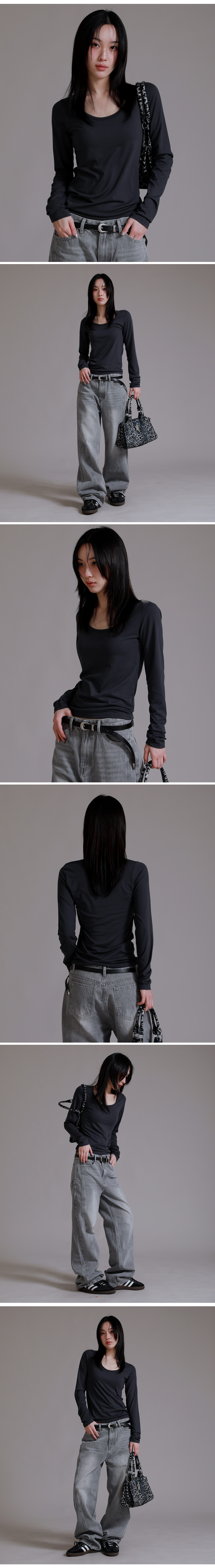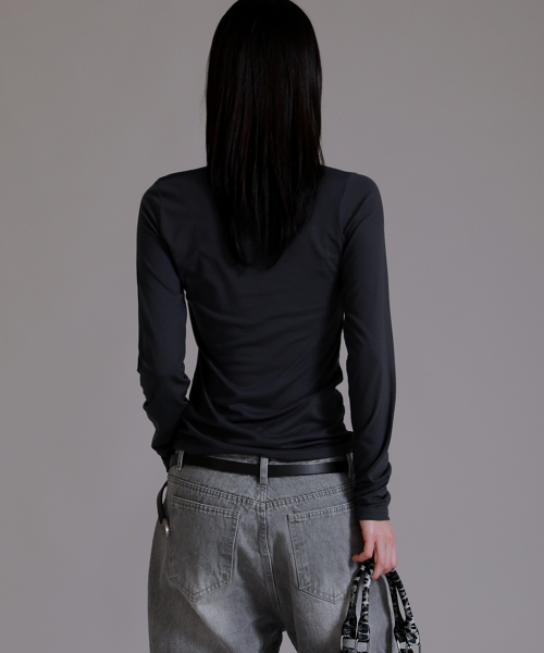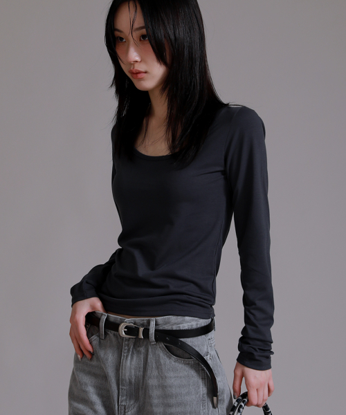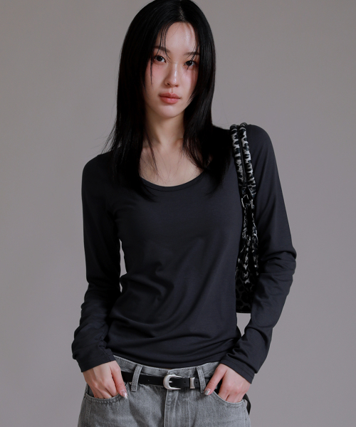 U 라운드 베이직 롱 슬리브 티셔츠_차콜