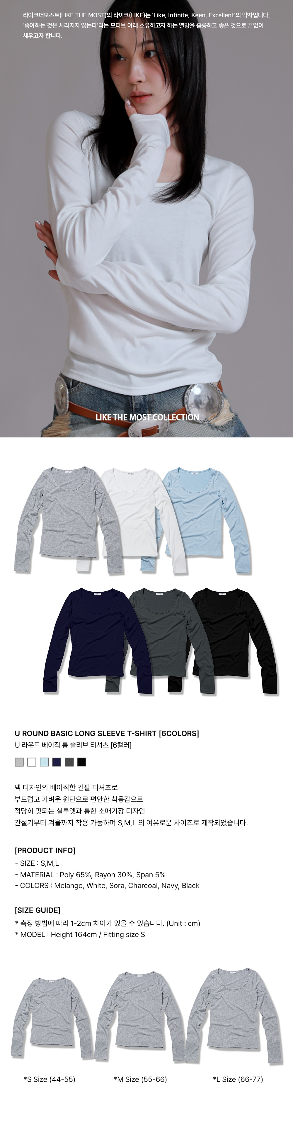U 라운드 베이직 롱 슬리브 티셔츠_멜란지