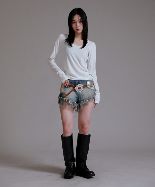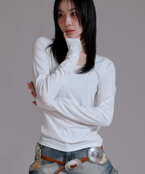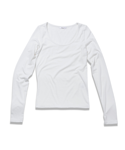 U 라운드 베이직 롱 슬리브 티셔츠_화이트