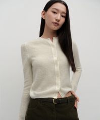 우먼즈 시어 텍스처드 라운드 넥 가디건 [크림]