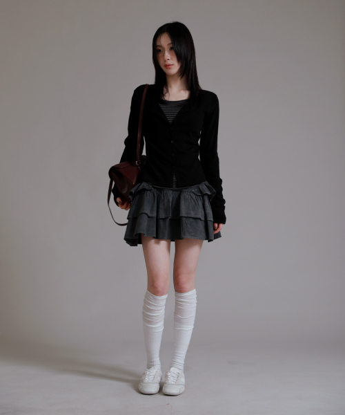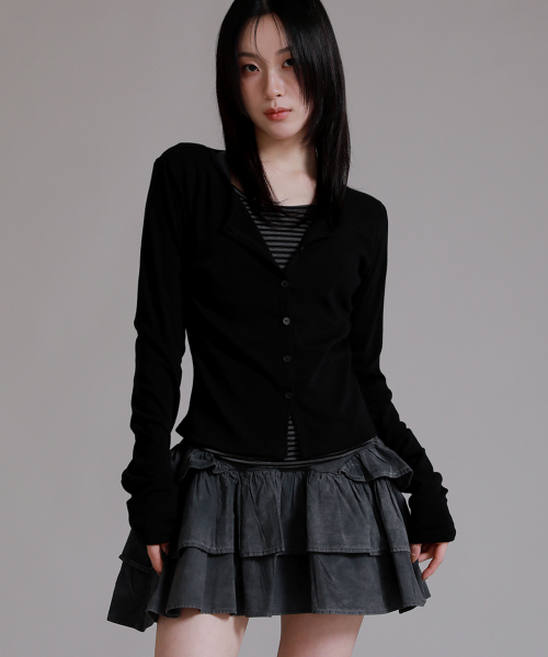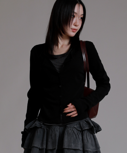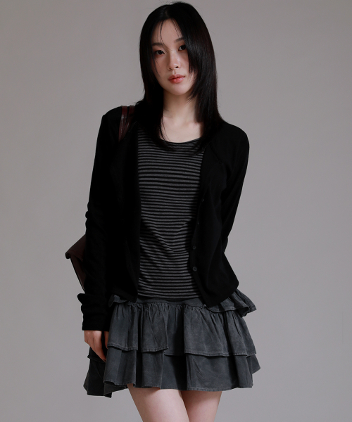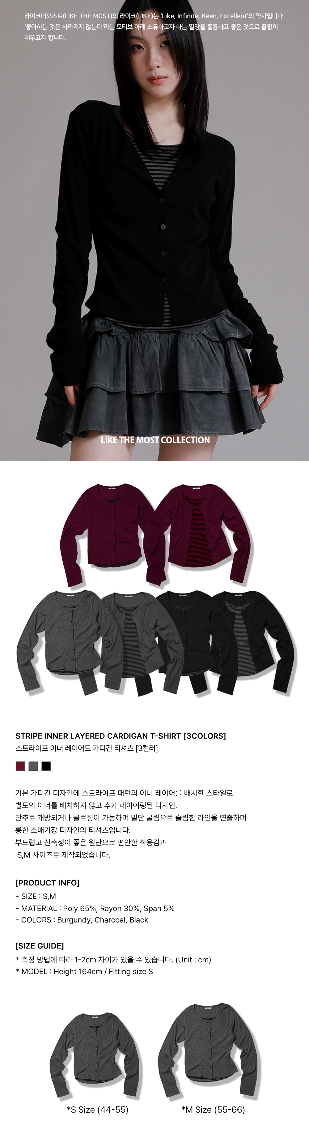 스트라이프 이너 레이어드 가디건티셔츠_블랙
