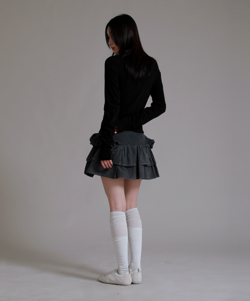 레이어드 헨리넥 슬림 롱슬리브 탑_블랙