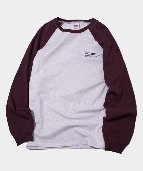 로고 커브드 라인 래글런 배색 롱슬리브 오버핏 티셔츠[와인]