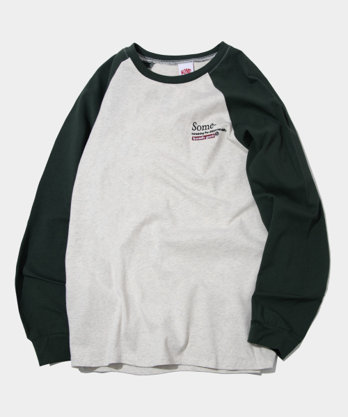 로고 커브드 라인 래글런 배색 롱슬리브 오버핏 티셔츠[와인]