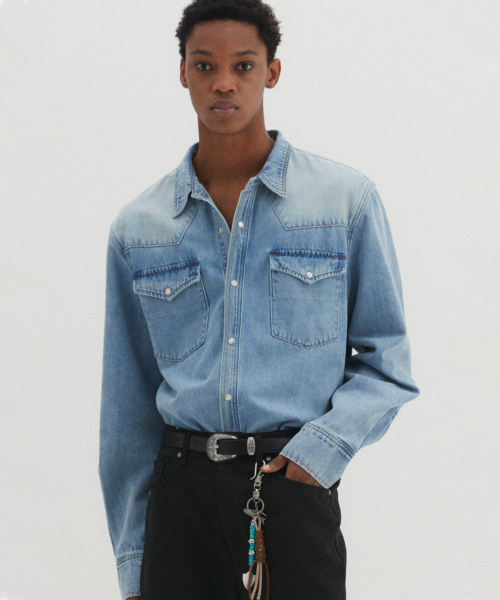 웨스턴 데님 셔츠 라이트 블루