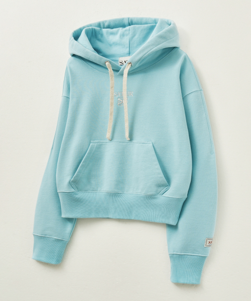 (W) 아페로 포켓 크롭 후드 티셔츠 블루
