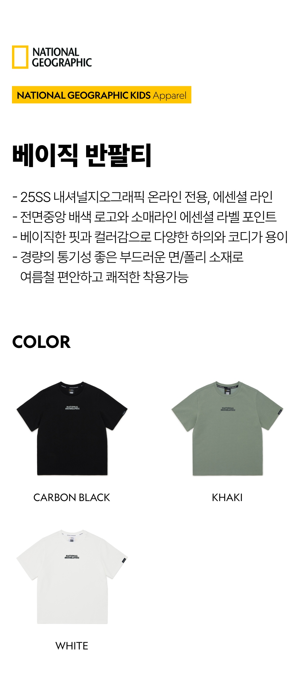 내셔널지오그래픽 키즈(NATIONAL GEOGRAPHIC KIDS)는 적극적으로 자신을 표현하며 가치 소비를 추구하는 여러분을 위해 의류, 캐리어, 백팩, 캠핑 등 700여 가지가 넘는 다양한 제품을 제안하는 내셔널지오그래픽(NATIONAL GEOGRAPHIC)의 키즈 라인입니다.