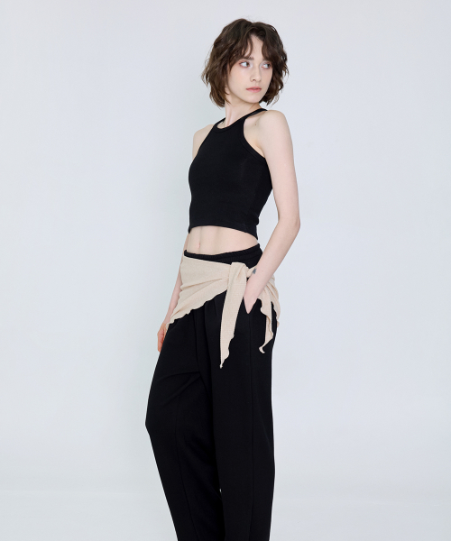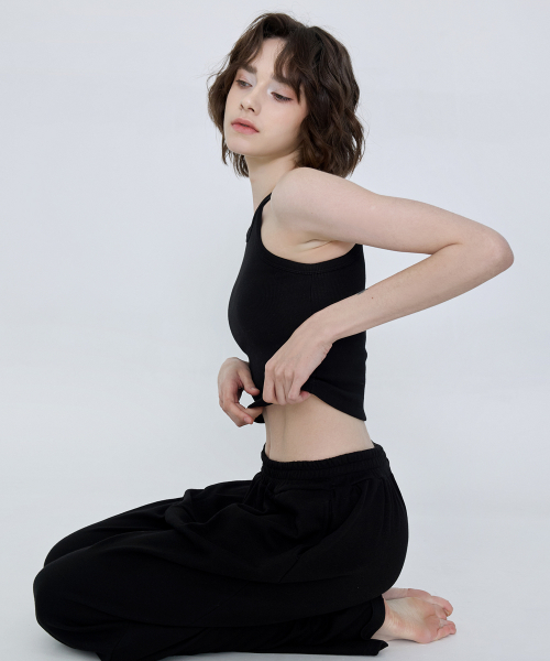여성 요가복 DEVI-TS0049-블랙 필라테스 피그먼트 홀터 슬리브리스