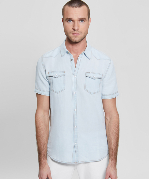 린넨혼방 포켓 반팔 데님셔츠 MN2D7200