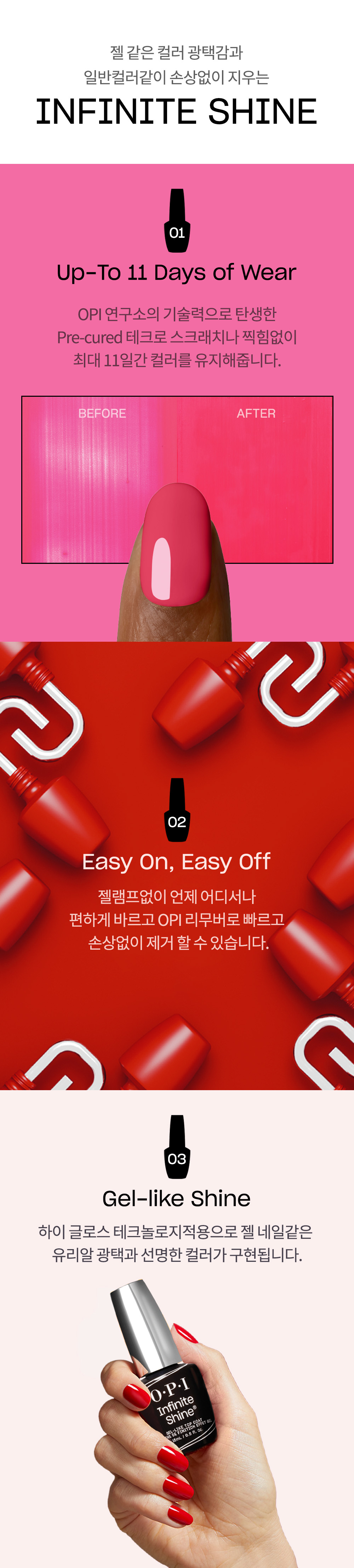 오피아이(O.P.I)는 손 끝에서 본연의 아름다움이 완성 되도록, 누구나 스스로에게 어울리는 컬러를 찾을 수 있도록 세상의 모든 컬러를 재현해낼 수 있는 단 하나의 브랜드입니다.