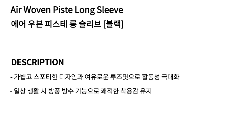 에어 우븐 피스테 롱 슬리브 - 블랙