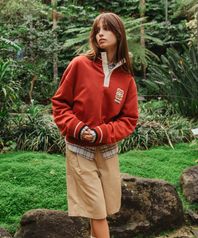 립 포인트 오픈 칼라 스웨트셔츠 레드