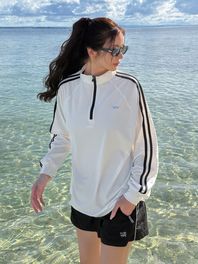 여성 세미 크롭 집업 핑거홀 래쉬가드 수영복 상의 (3color)/ RI373W