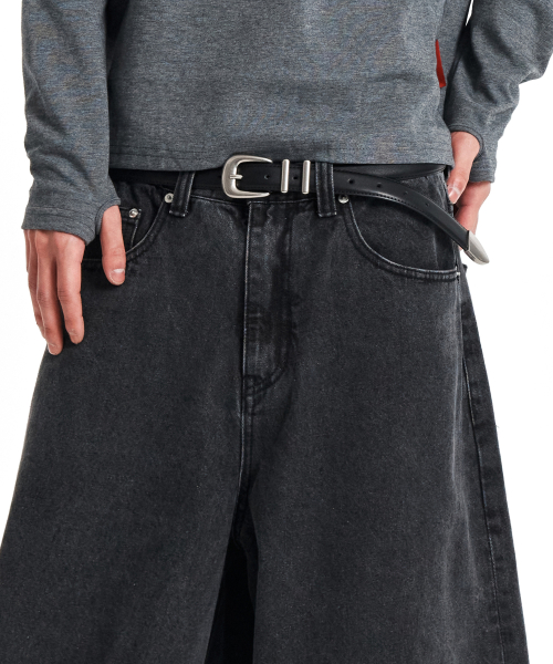 - 웨스턴 스타일의 버클과 금속 끝 팁으로 디자인된 벨트