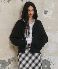 우먼즈 오버사이즈 후디드 스웨트 집업 [블랙]