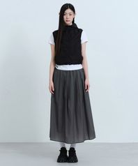 우먼즈 시어 나일론 플리츠 롱 스커트 [그레이]