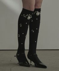Pearl Knee Socks - Black,Grey