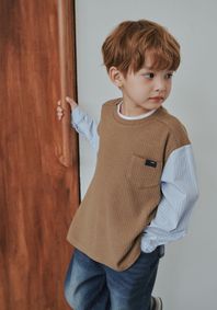 BZ53TS01BG 스트라이프 우븐 배색 베이지 티셔츠