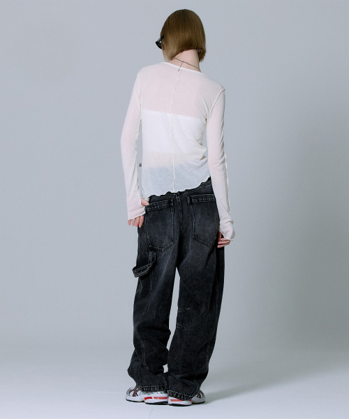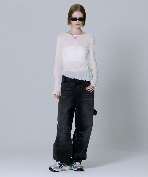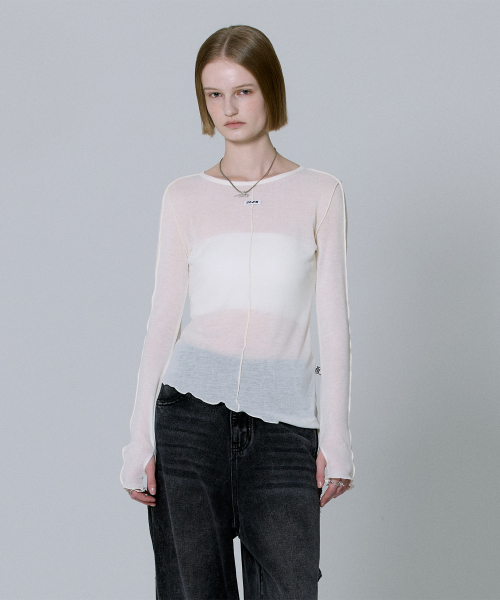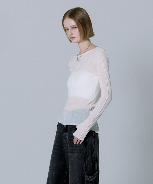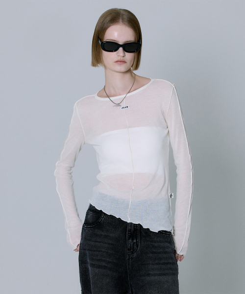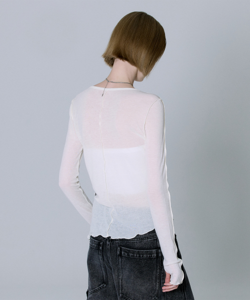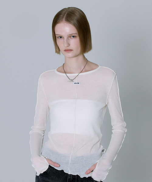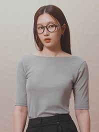 7부 스터드 보트넥 티셔츠 [아이보리]