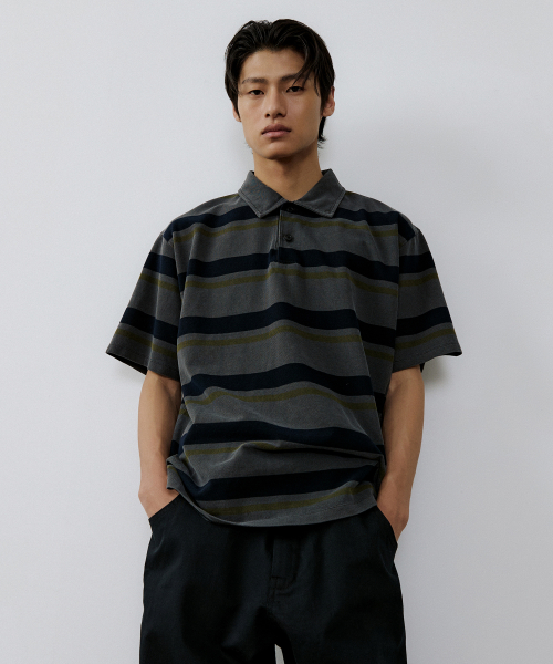 Vintage pk stripe 1/2 polo shirt (vtg gray)