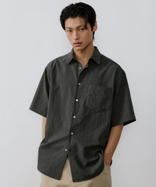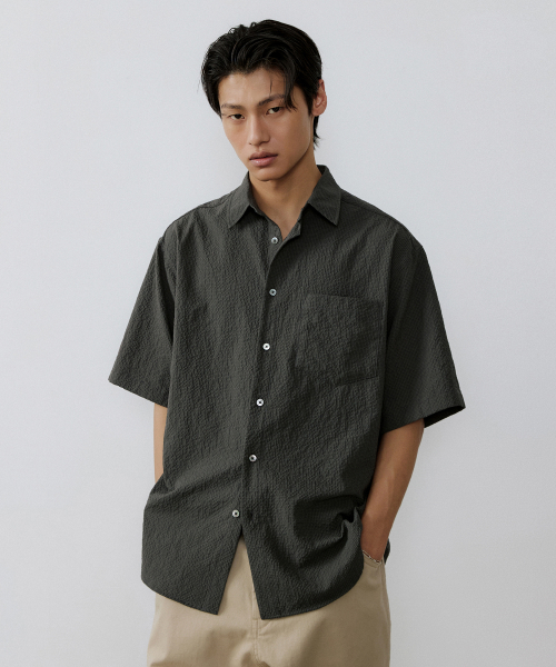 Washed seerucker 1/2 shirt (olive gray)