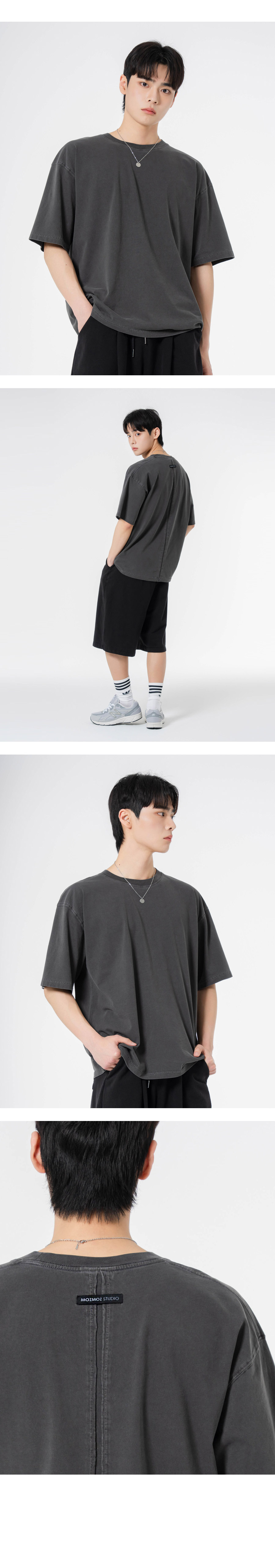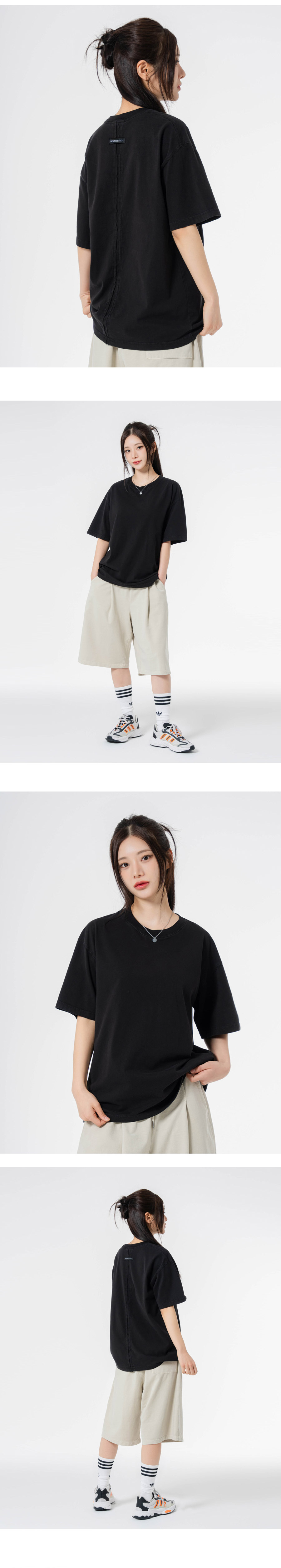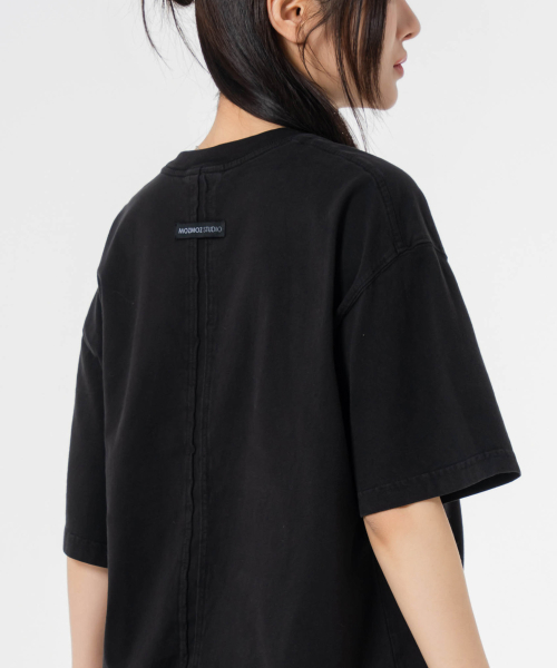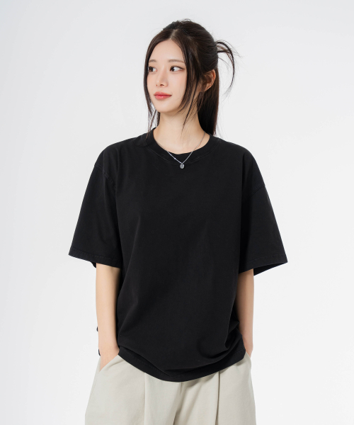 뒷절개 오버핏 피그먼트 반팔티셔츠 블랙