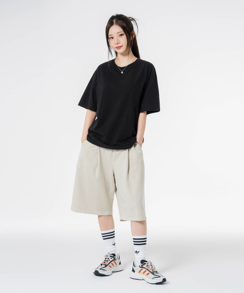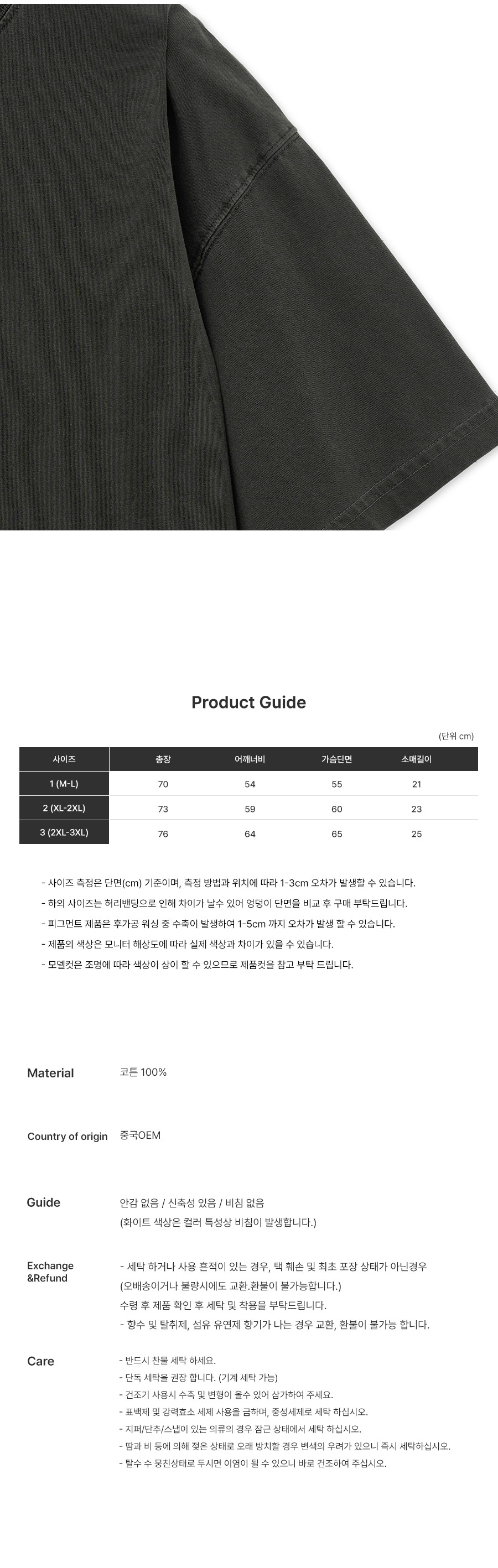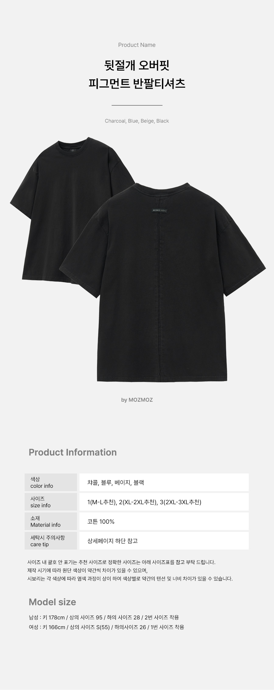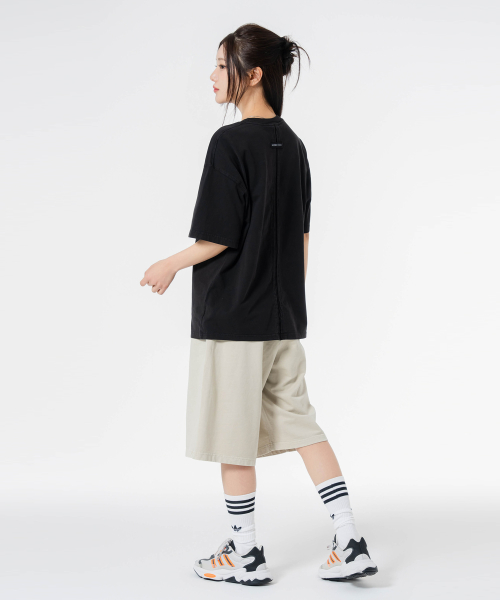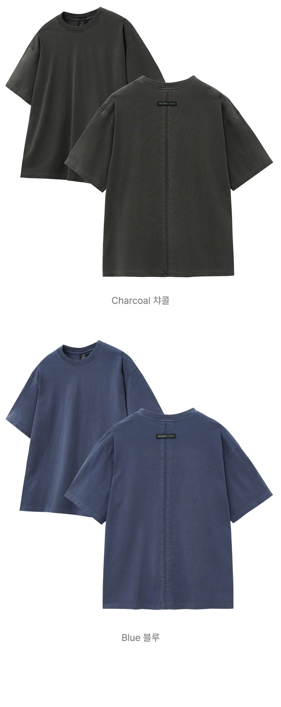 뒷절개 오버핏 피그먼트 반팔티셔츠 블랙