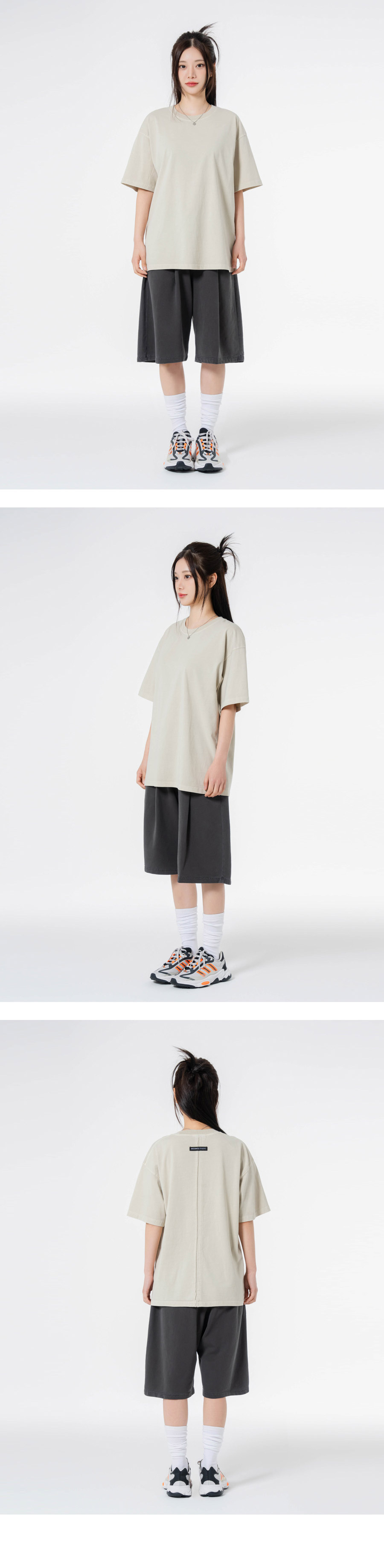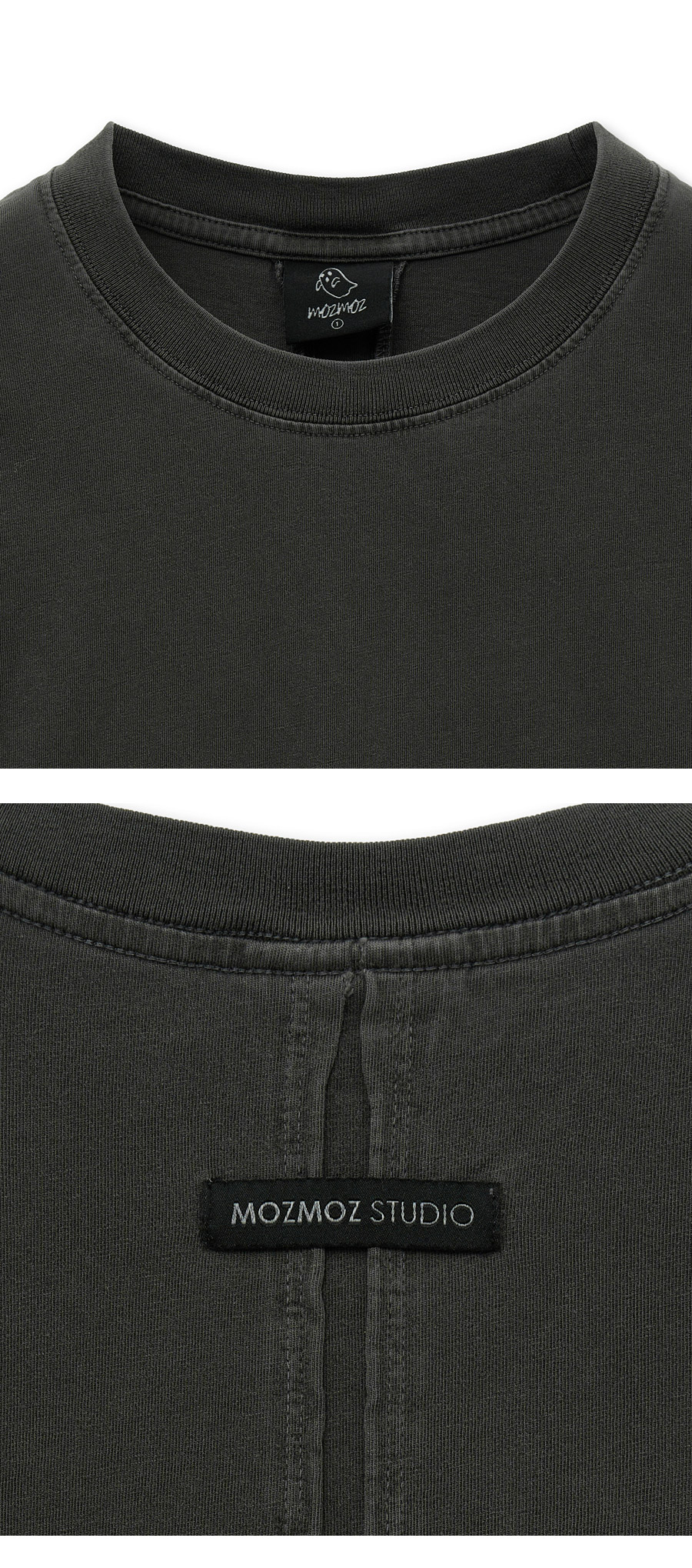 어깨 절개 무지 오버핏 피그먼트 반팔티셔츠 챠콜