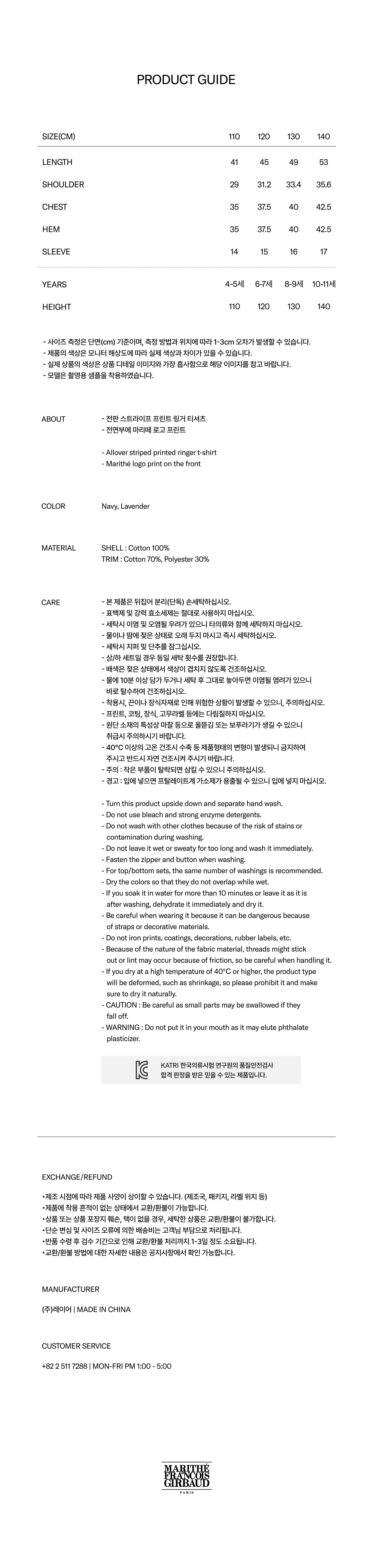 마리떼 키즈(MARITHÉ KIDS)는 마리떼 프랑소와 저버 특유의 프렌치 감성과 무드를 담은 키즈 라인. 마리떼 어덜트 라인과 함께 패밀리 룩을 연출할 수 있는 시그니처 아이템 미니 버전과, 아이들의 동심을 닮은 그래픽이 특징입니다.