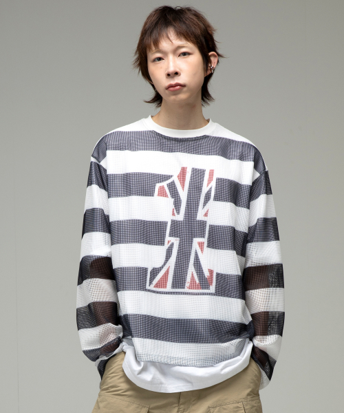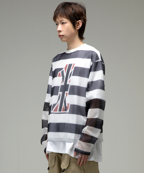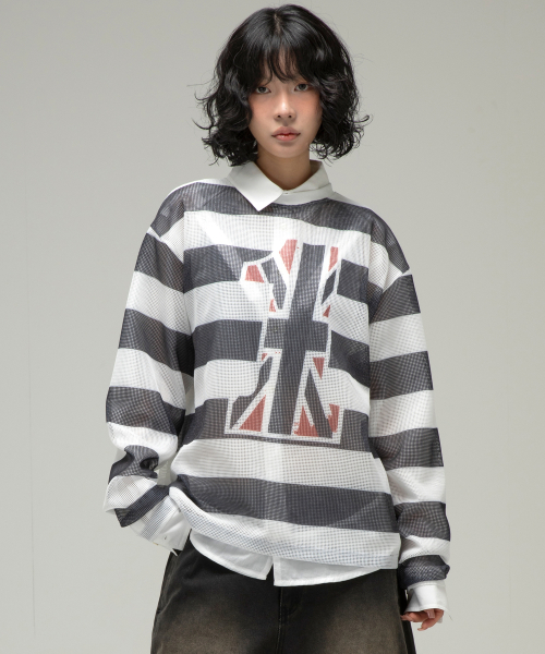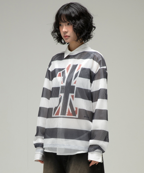 GT132 유니티 스트라이프 그물 니트 (BLACK)