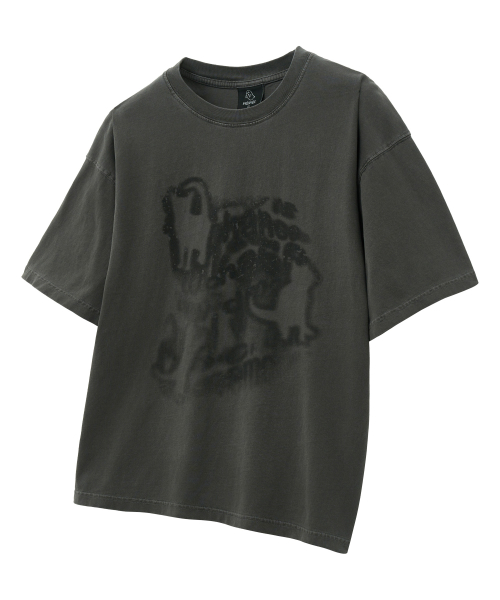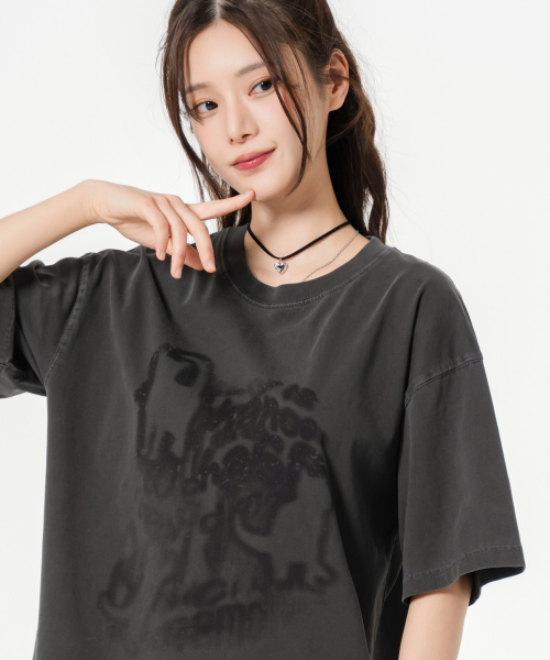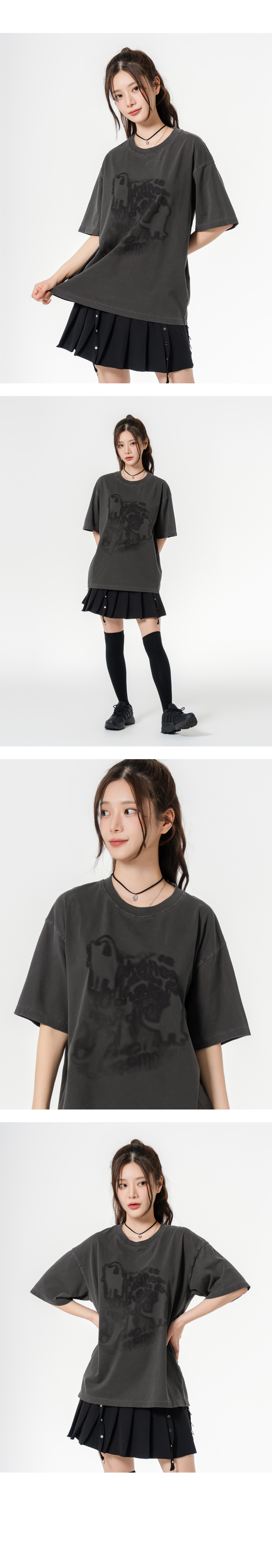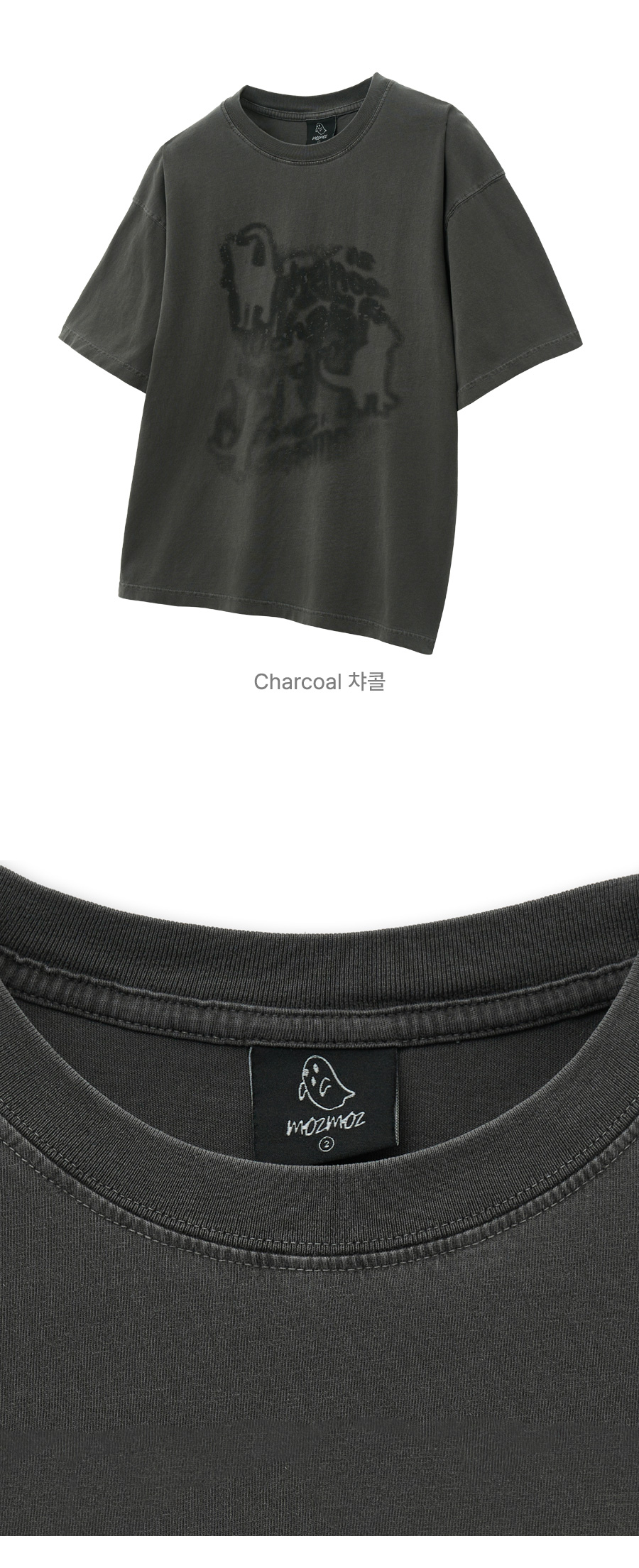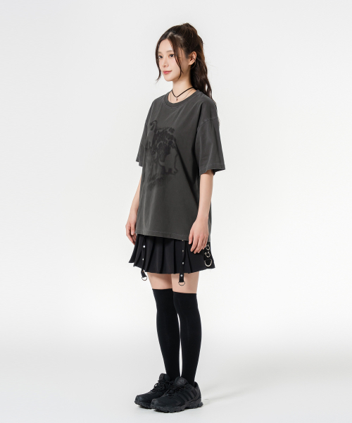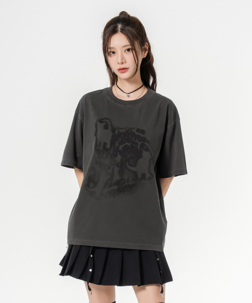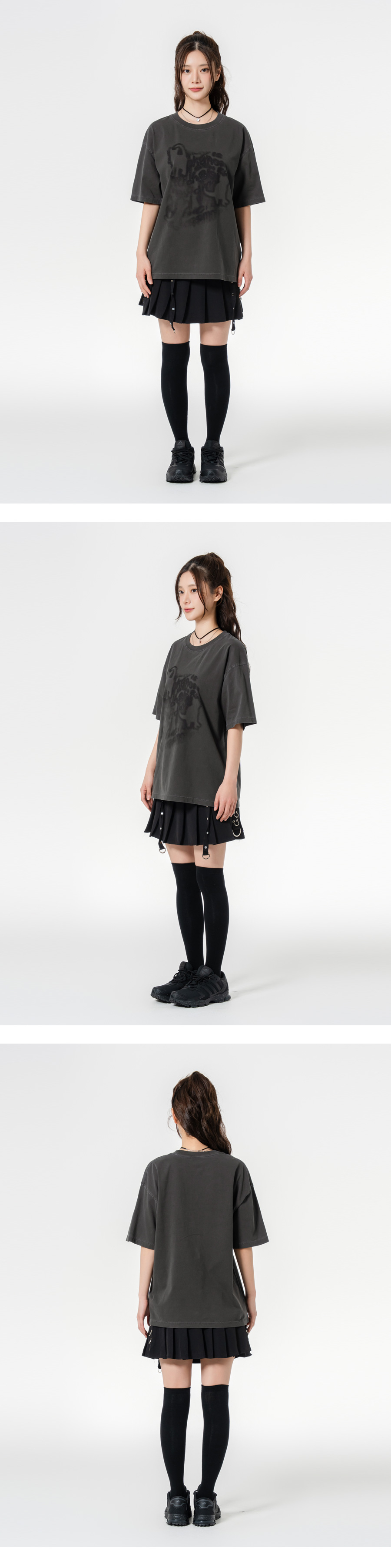 레터링캣 오버핏 피그먼트 반팔 티셔츠 챠콜